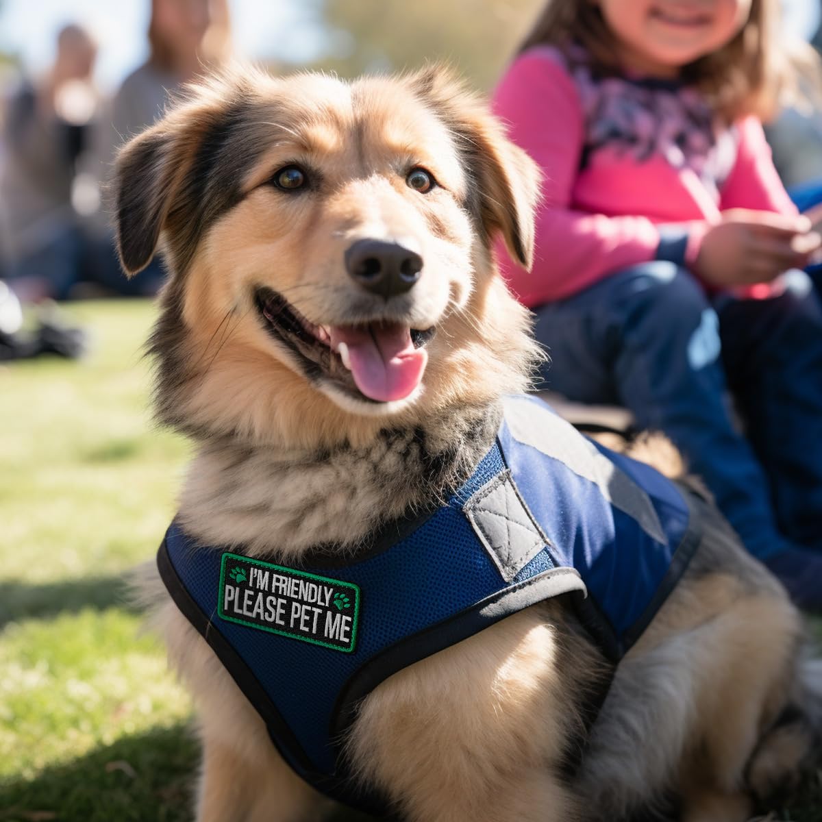 TACVEL 2 Pieces I'm Friendly Please Pet Me Dog Patches, Service Dog Patches with Hook Backing for Service Animal Vests, Harnesse