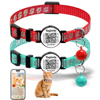 Taghelp Reflective Cat Collar Breakaway With Bells & Smart Id Qr Code Name Tag, 2 Pack Girl Boy Pet Cat Collar Adjustable 7.5-12
