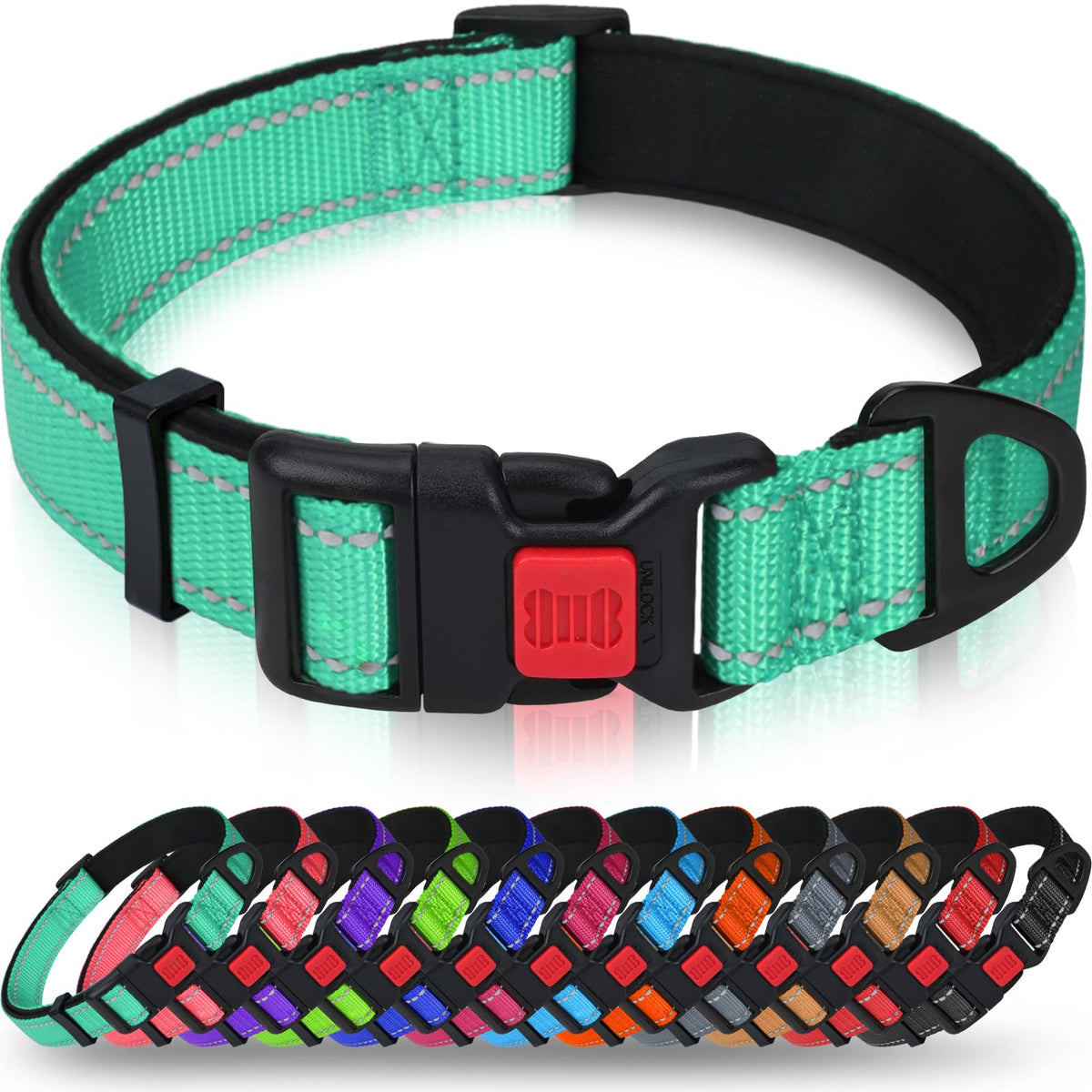 Taglory Reflective Dog Collar With Safety Locking Buckle, Adjustable Nylon Pet Collars For Large Dogs Female Male, Turquoise, L