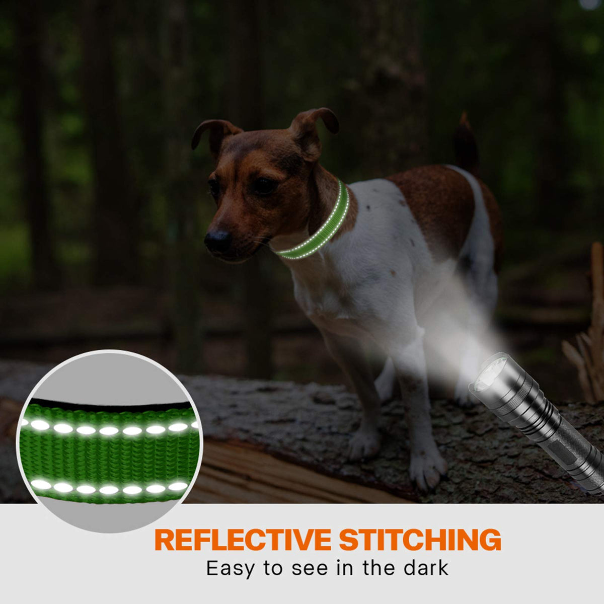 Taglory Reflective Dog Collar With Safety Locking Buckle, Adjustable Nylon Pet Collars For Small Dogs, S, Green