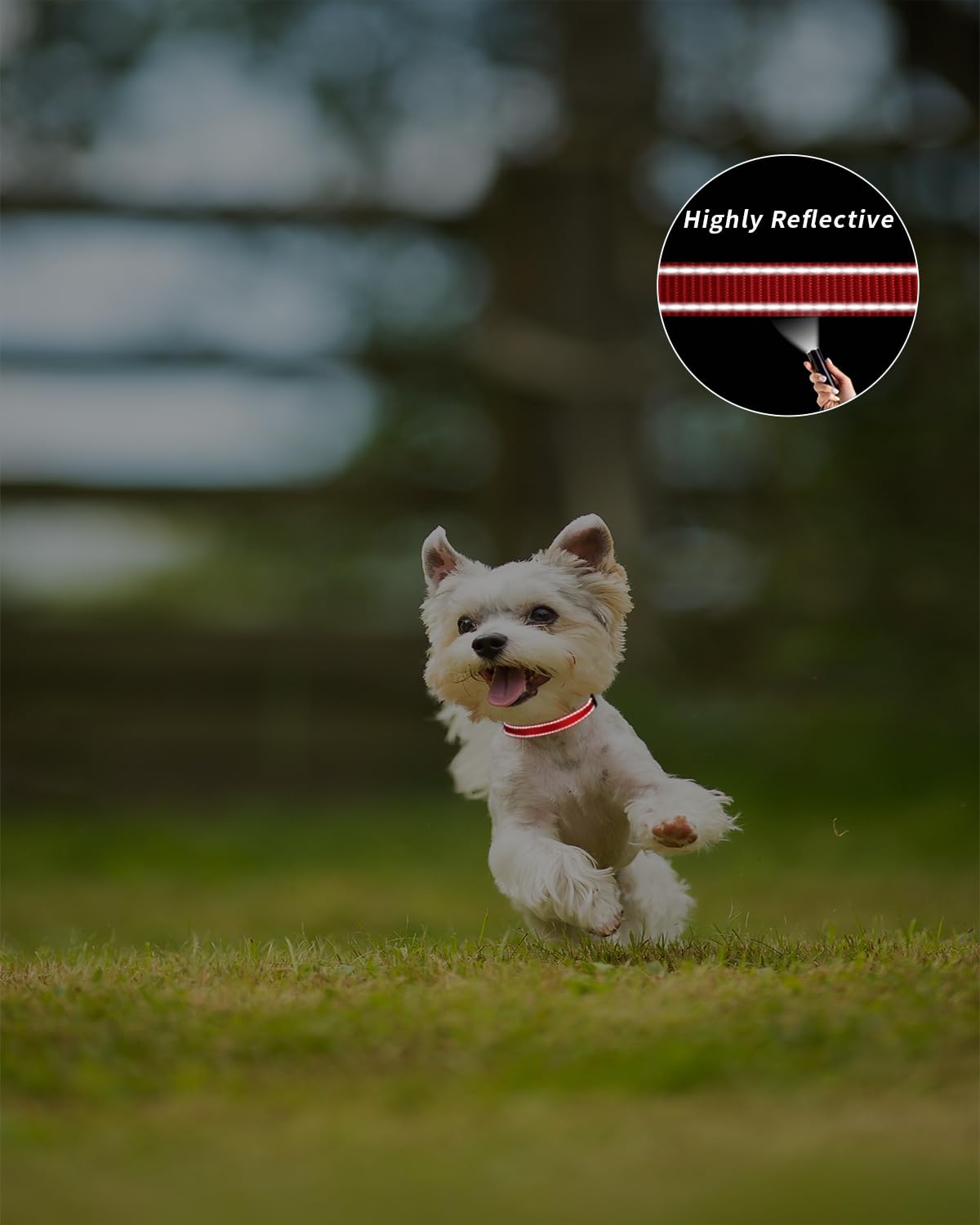 Tagme Reflective Nylon Dog Collars, Adjustable Classic Dog Collar With Quick Release Buckle For Extra Small Dogs, Red 5/8' Width