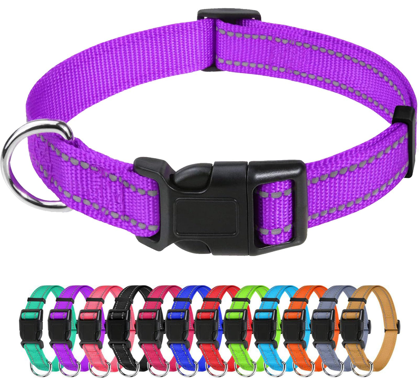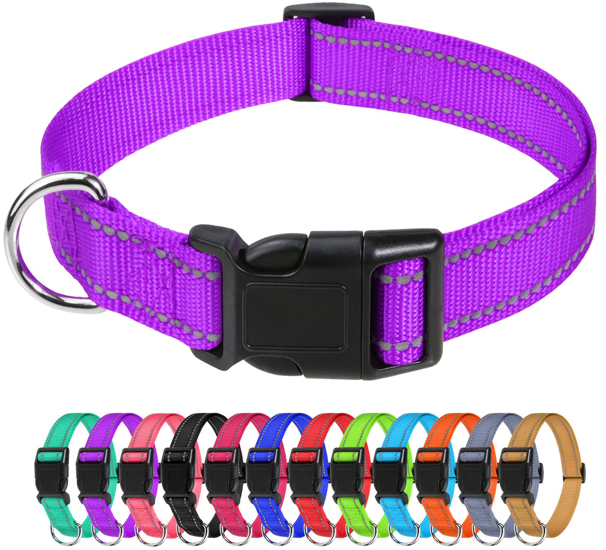 Tagme Reflective Nylon Dog Collars, Adjustable Classic Dog Collar With Quick Release Buckle For Small Dogs, 3/4' Width Purple