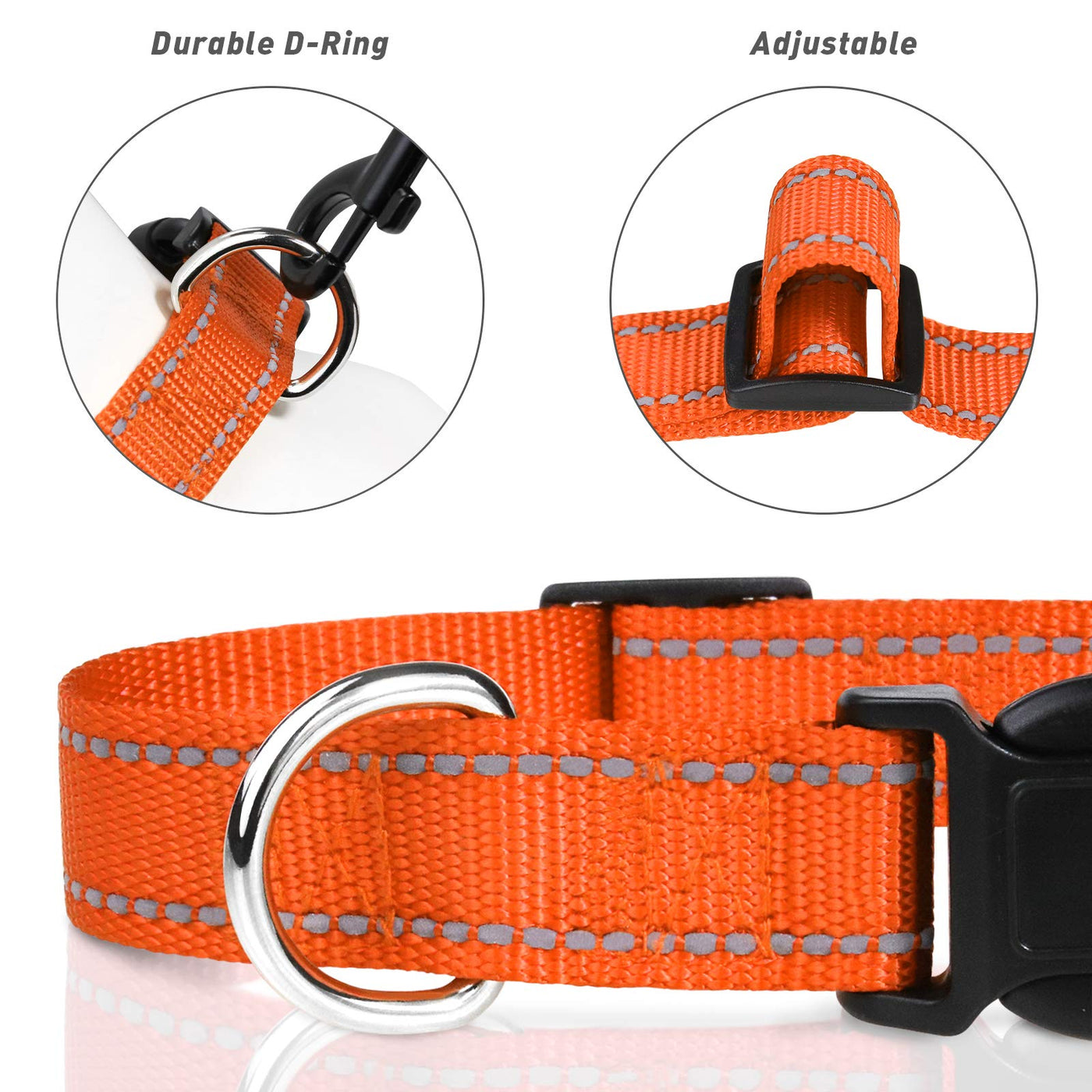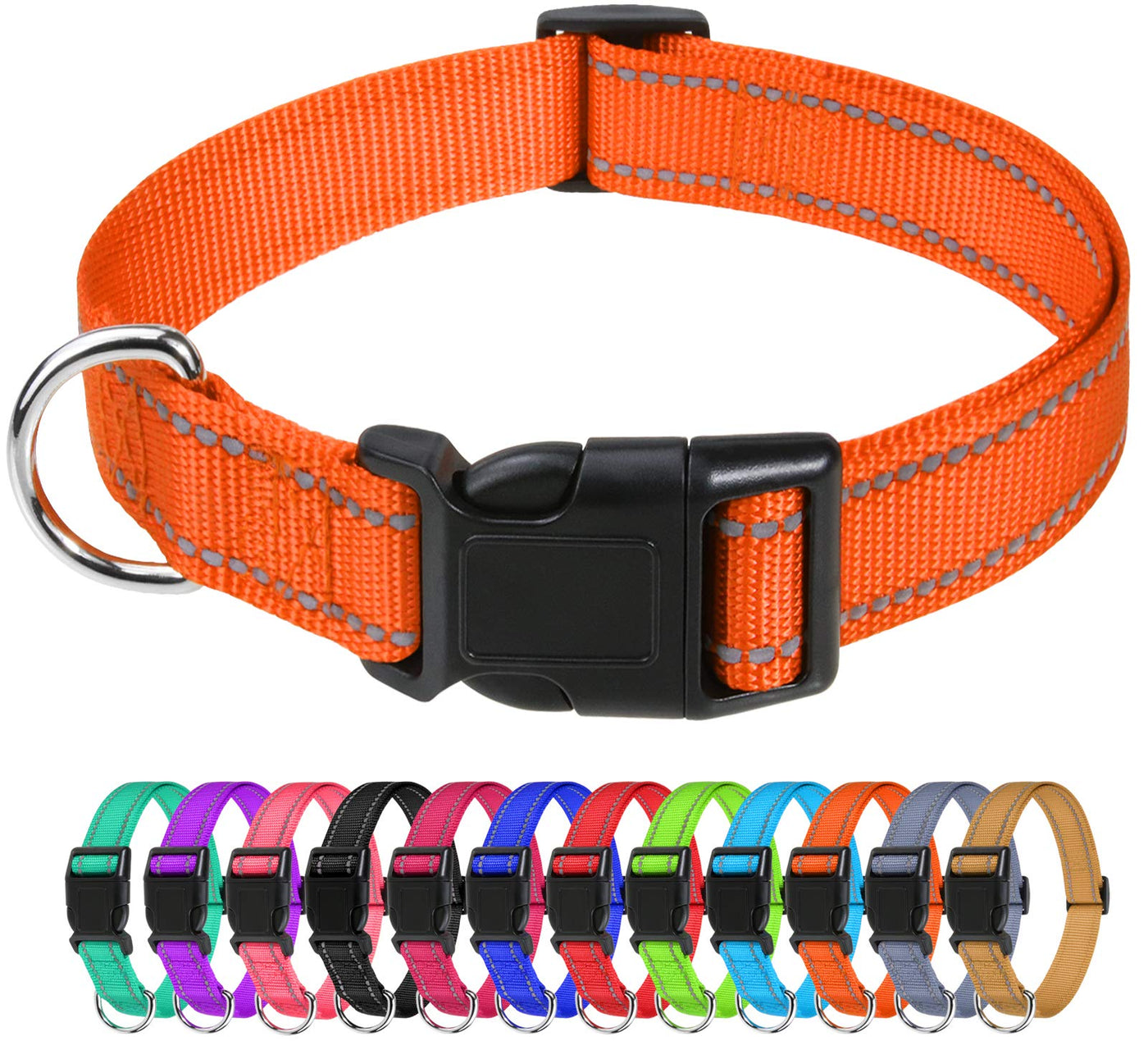 Tagme Reflective Nylon Dog Collars, Adjustable Classic Dog Collar With Quick Release Buckle For Small Dogs, Orange, 3/4' Width
