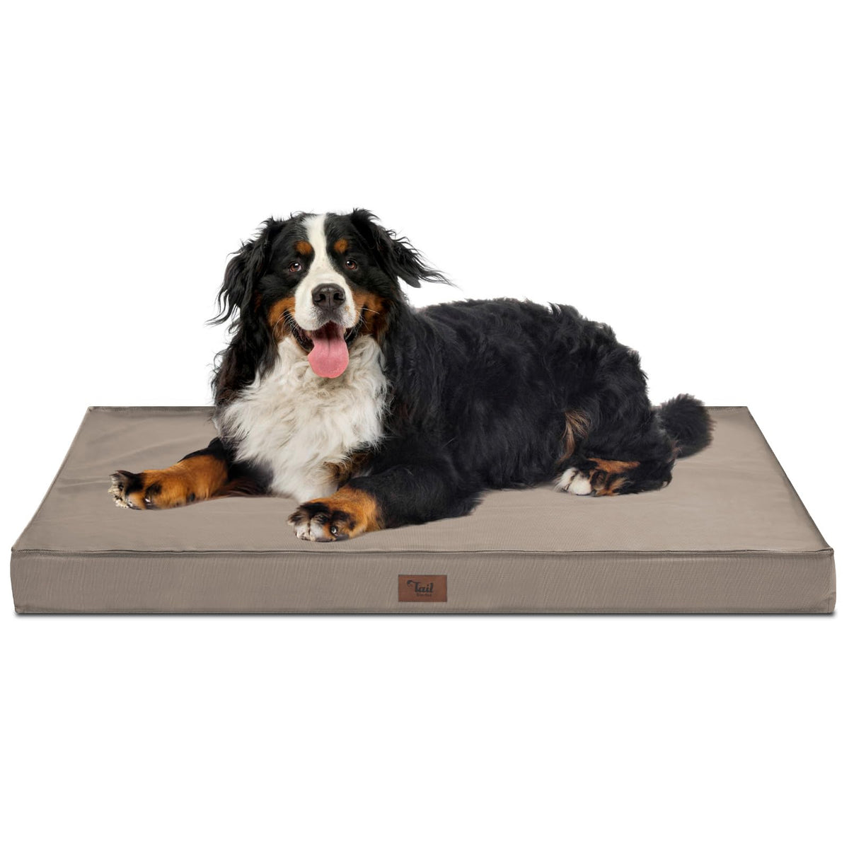 Tail Stories Dog Crate Bed Washable Dog Beds For Large Dogs, Big Waterproof Orthopedic Dog Bed With Egg Crate Foam Pet Bed Mat, Removable Oxford Cooling Cover, Khaki