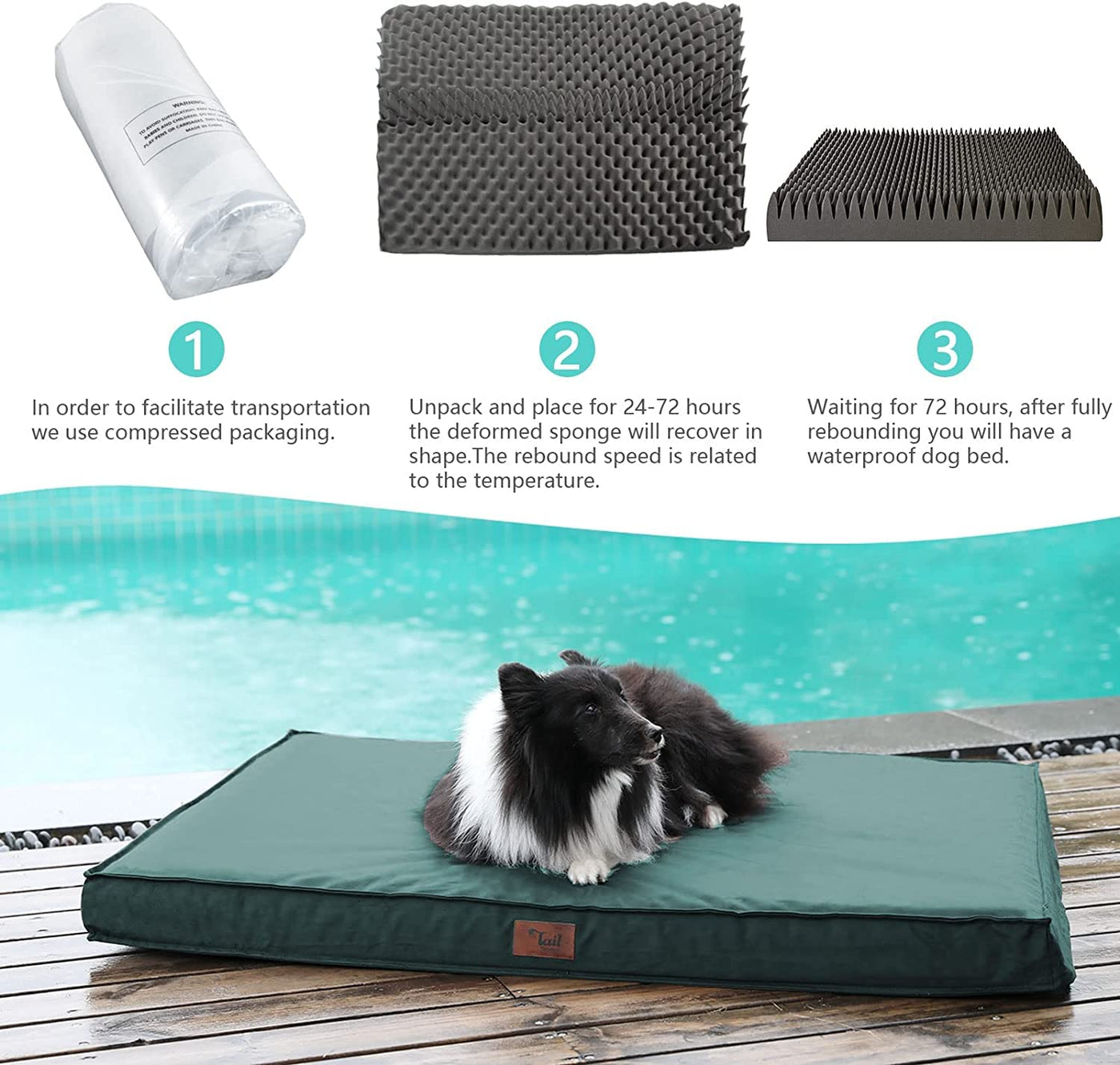 Tail Stories Outdoor All Weather Dog Bed, Waterproof Dog Bed For Large Dogs, Orthopedic Egg Foam Indestructible Pet Bed With Washable Removable Cooling Dog Bed Cover