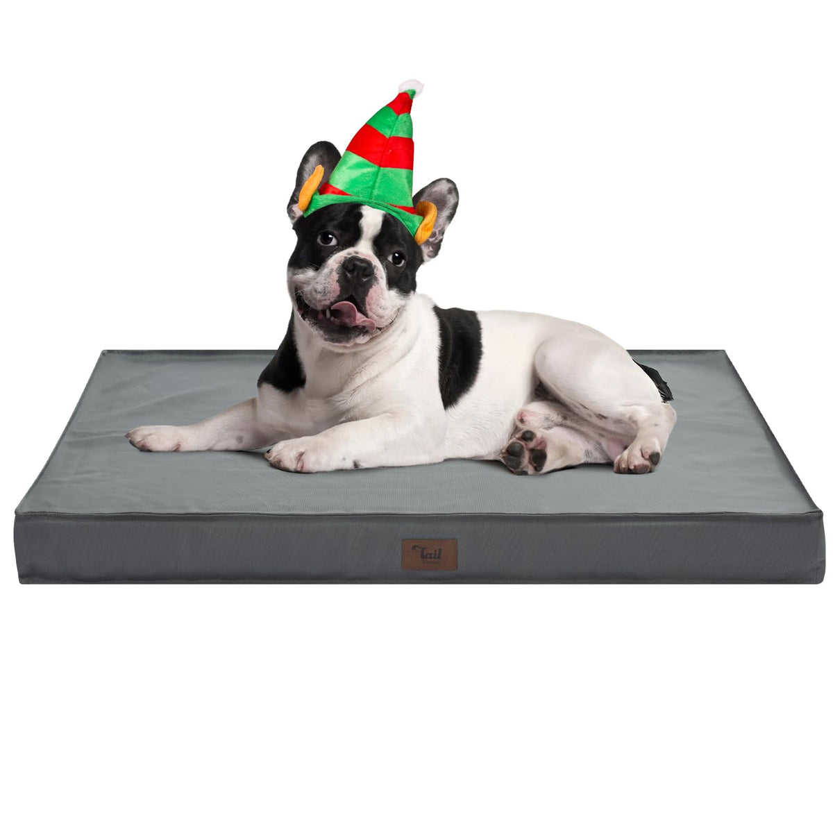 Tail Stories Outdoor Dog Bed For Medium/Small Dogs, Waterproof Dog Crate Bed For Medium Dogs Cats, Orthopedic Egg Crate Foam Pet Bed With Washable And Removable Oxford Cover, Grey