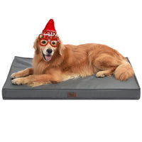Q: What is the material of the dog bed and how does it benefit my dog?A: The dog bed is made of 600D waterproof Oxford fabric, providing durability and comfort. The orthopedic egg-crate foam, up to 3.5 inches thick, helps evenly distribute your dog's weight, alleviating pressure on joints and making it a great choice for elderly dogs.