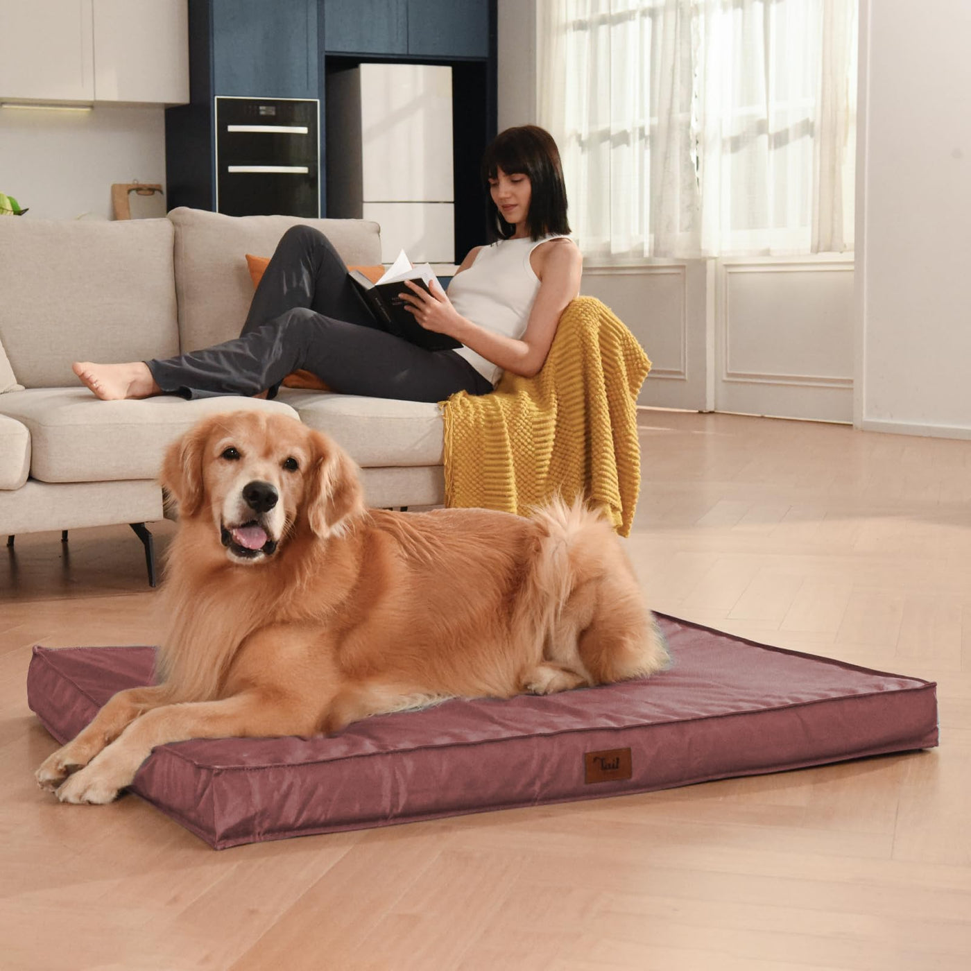 Tail Stories Outdoor Extra Large Dog Crate Bed, Big Waterproof Dog Bed For Large Dogs, Orthopedic Egg Foam Pet Bed Mat With Remo