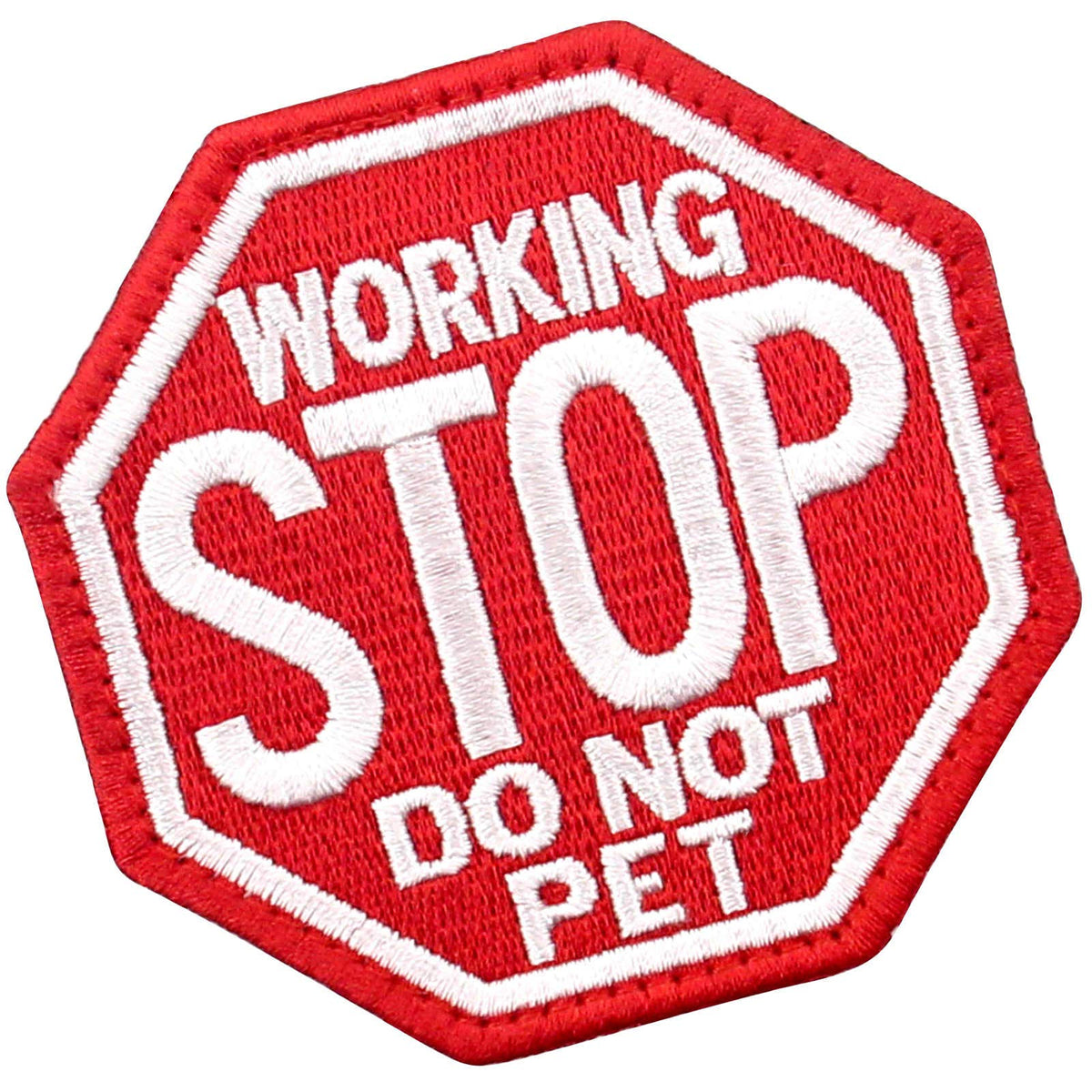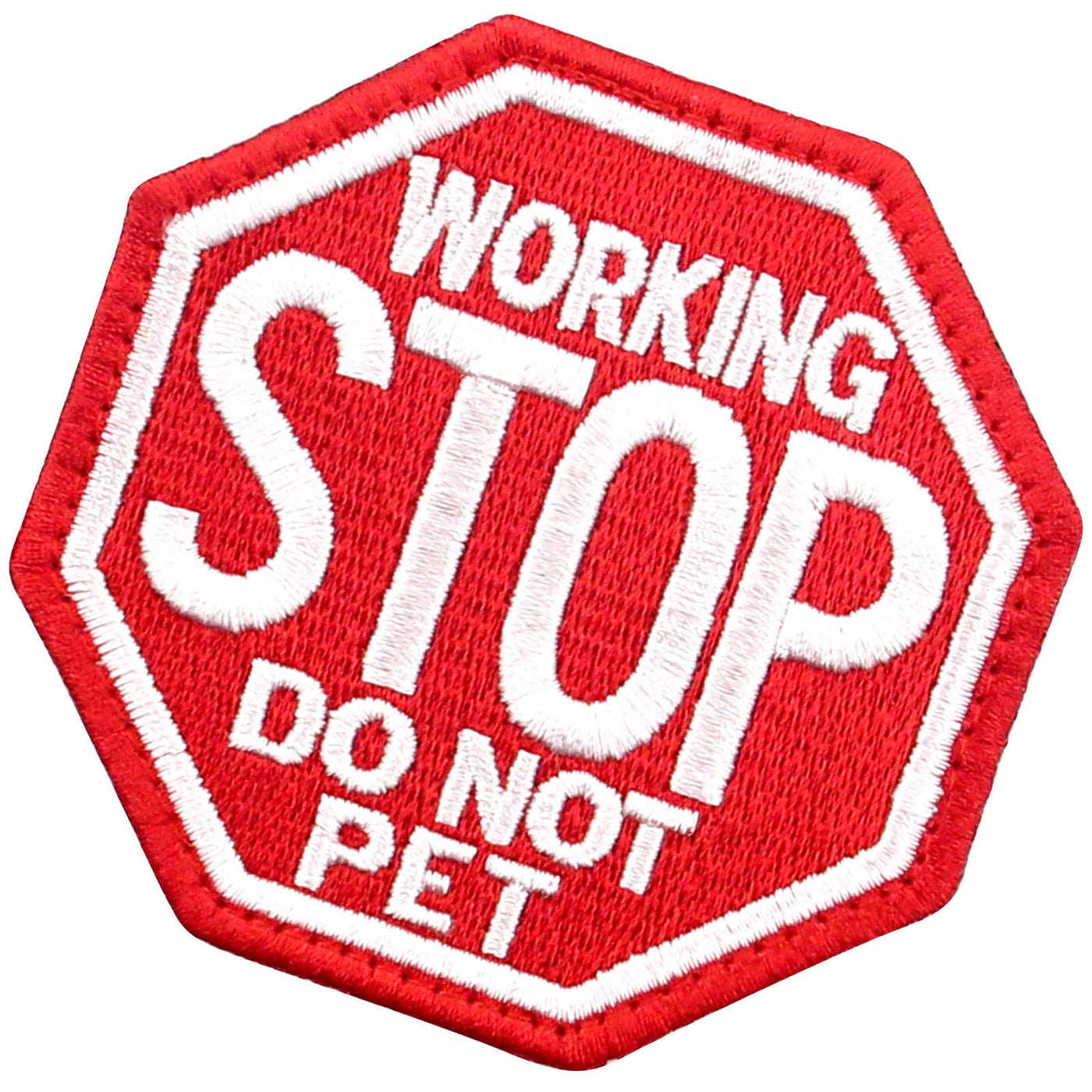 Tailwag Planet Service Dog Working Stop Do Not Pet Morale Tactical Patch Embroidered Badge Fastener Hook & Loop Emblem, Red & White