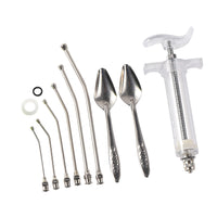 Syringe Material: Plastic + stainless steel Gavage Tubes Material: Stainless steel Syringe Capacity: 20ml or 50ml Gavage Tubes Size: (6 models) 18 G : (tubing length: approx. 50mm + 20mm / Head diameter: approx. 3mm), curved, for waxbills and other small birds 16 G : (tubing length: approx. 55mm + 25mm / Head diameter: approx. 4.5mm), curved, for Finches / Canaries 14 G : (tubing length: approx. 65mm + 30mm / Head diameter: approx. 4.5mm), curved, for Cockatiels, Budgerigars and small parkeets, plus small raptors 12 G : (tubing length: approx. 75mm + 35mm / Head diameter: approx. 4.5mm), curved, for African Greys, Amazons and most Falcons 10 G : (tubing length: approx. 90mm + 40mm / Head diameter: approx. 5.5mm), curved, for Small Macaws and small cockatoos 8 G : (tubing length: approx. 105mm + 50mm / Head diameter: approx. 7mm), curved, for Harris Hawks, large Macaws and large Cockatoos Applicable objects: parrots, pigeons, rodents, etc. small pet Package included: 6 Pcs x Gavage Tubes( 8G / 10G / 12G / 14G / 16G / 18G ) 1 Pcs x Syringe 2 Pcs x Stainless Steel Metal Feeding Spoon Note: Please allow 0-1cm errors due to manual measurement. Item color displayed in photos may be showing slightly different on your computer monitor since monitors are not calibrated same.