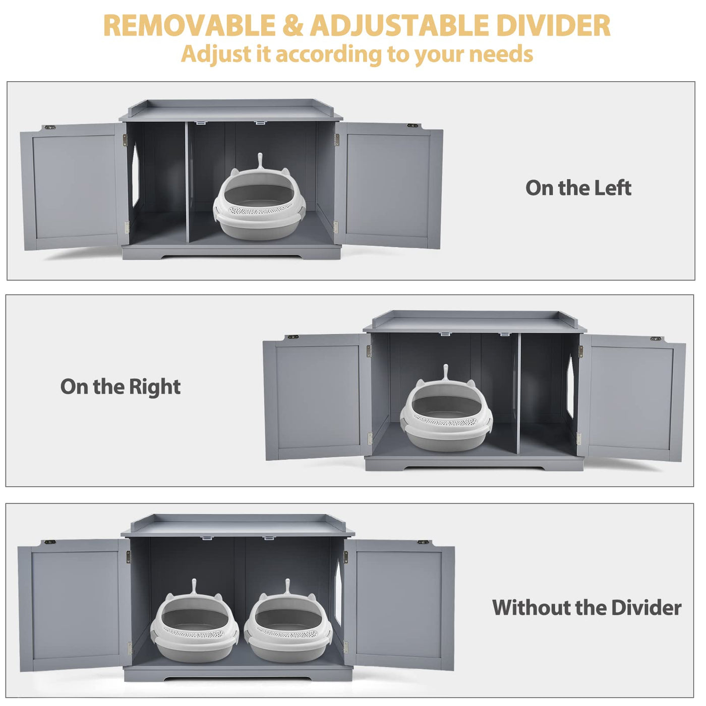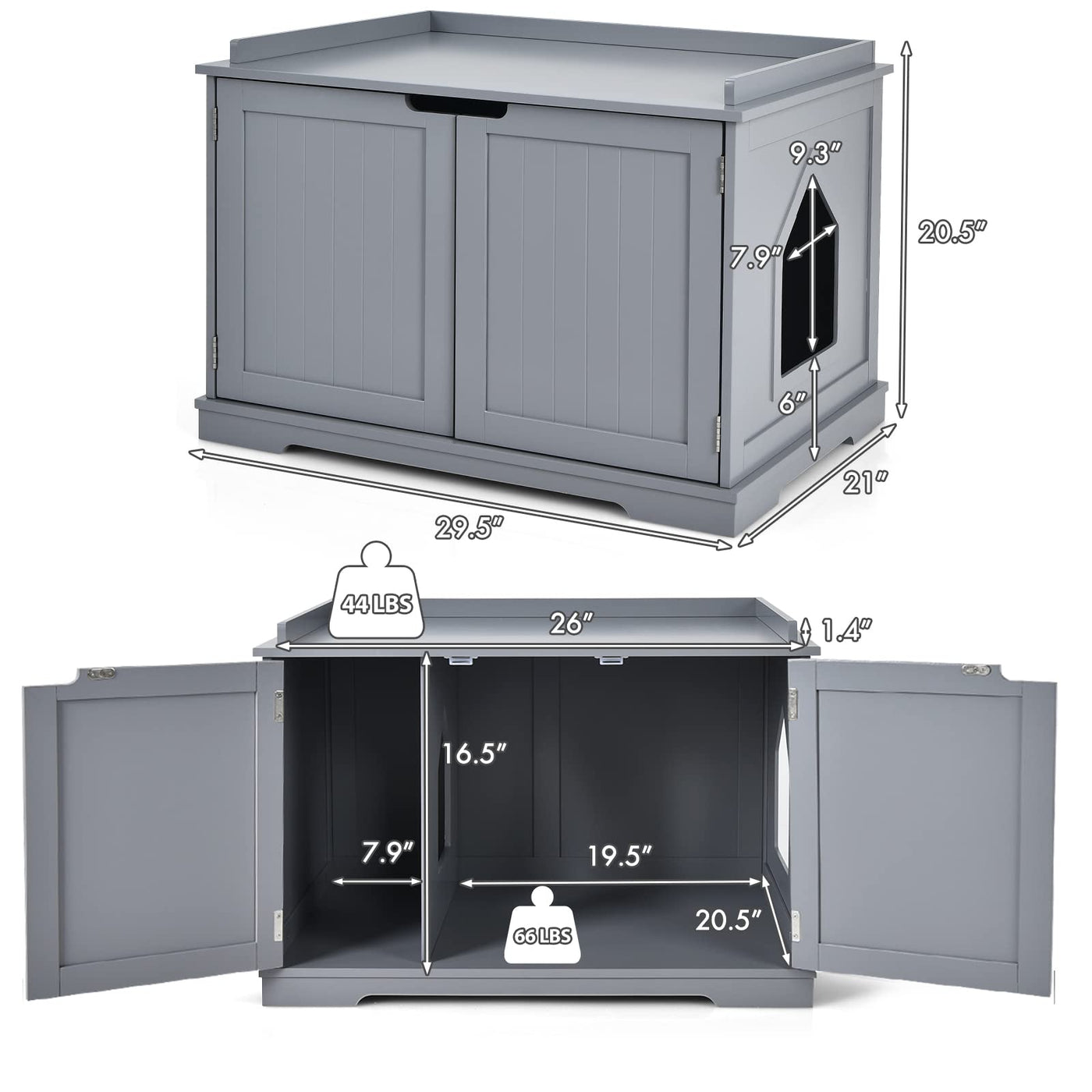 Descriptionare You Still Looking For A Cozy Cat House For Your Lovely Pet Do You Want To Take Better Care Of Your Cat If Your Answer Is Yes, All You Need Is To Do Is To Purchase This Large-Sized Pet House Featuring High Quality Engineered Board Structure And Water-Proof Paint To Make This Litter Enclosure More Durable And Strong It Can Bear Large Weight Up To 110Lbs And Creating A Safe Space For Cat To Sit, Sleep And Play In Addition, We Set One Cat Hole And A Magnetic Door To Help You Clean The Kitty Litter And Improve Air Ventilation Whats More, You Can Also Take This Cat House As A Cabinet Or Bedside Table Owing To Its Large Storage Space And Handsome Appearancefeaturemultifunctional Cat House Meets Your Various Needsextra Counter Top Space For Cats Fun Owing To The Wide Top With Anti-Falling Apron Rimmade Of Sturdy Mdf With Large Bearing Capacity, Stable And Durablesuitable For Most Litter Boxes Or Pet Bedsremovable Inner Wall For Separate Storagelarge-Sized Cat Hole For Easy Accessside Magnetic Door With Handles Makes It Easy To Clean Two Doors Ensure Good Air Circulation During Cleaning Processcreate Pet With A Private And Safe Space To Do Their Own Business Easy Assembly Within Minutes With Instruction Included Specificationcolor: Greymaterial: Mdf, Nc Paintouter Dimensions: 295A (L) X 21A (W) X 205A (H) Cat Hole Dimensions: 79A (L) X 93A (H) Net Weight: 32 Lbsroof Weight Capacity: 44 Lbsbase Board Capacity: 66 Lbspackage Includes: 1 X Cat Litter House1 X User Manual