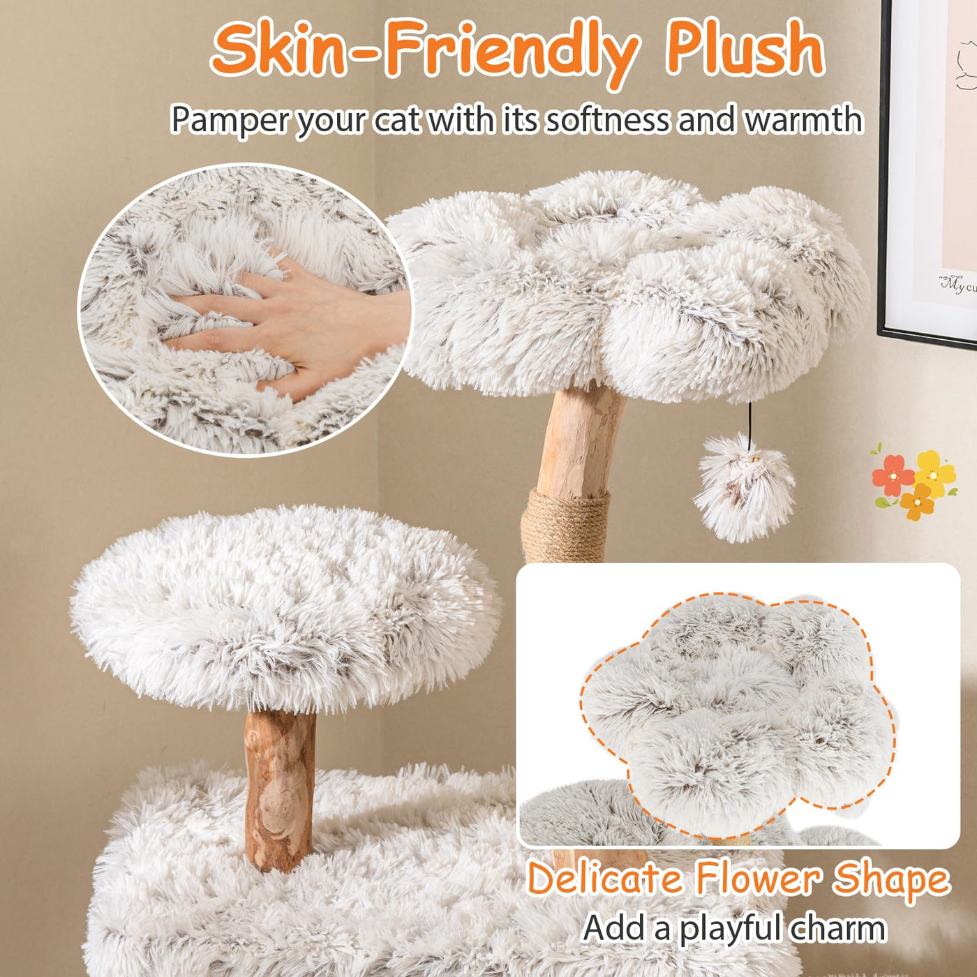 Descriptioncreate The Purrfect Paradise For Your Feline Friend!Our 53 Tall Modern Cat Tree, Constructed From Solid Pear Wood Supporting Posts, Stands Apart With Its Unique Branch Shapes, Making Every Tree A One-Of-A-Kind Piece. This Feature Not Only Provides Exceptional Durability But Also Adds An Artistic Touch To Your Home Decoration. From A Luxurious Condo For Cozy Retreats To A Plush Top Perch In A Delicate Flower Shape And 2 Round Padded Platforms, It Provides Varied Options For Relaxation. Every Platform Is Adorned With Skin-Friendly Plush Fabric For A Soft And Cozy Lounging Experience. Moreover, It Includes Natural Jute Scratching Posts And A Plush Dangling Ball, Designed To Satisfy Your Cats Natural Urge To Scratch, Keeping Them Engaged And Your Furniture Unscathed. Featurethe Supporting Posts Are Crafted Of Solid Pear Wood, Sturdy And Reliablethe Solid Wood Branches Add A Touch Of Sophistication And Rustic Charmthe Comfortable Cat Condo Offers A Private And Secure Resting Spotdesigned With A Snug Top Perch For A Birds Eye View When Relaxingdesigned With 2 Round Platforms In Thick Padding For Jumping And Nappingthe Top Perch In An Exquisite Flower Shape Adds A Playful Charmthe Long Plush Coverings Pamper Your Cat With Its Softness And Warmthequipped With Jute Scratching Posts, Allow Cats To Grind Claws And Release Instinctsequipped With A Plush Dangling Ball, Entice Playful Interaction And Add More Funspecificationcolor: White+Naturalmaterial: Engineered Board, Pear Wood, Plush, Juteproduct Dimensions: 23.5 X 17.5 X 53 (L X W X H)Condo Size: 17 X 12 (Dia. X H)Diameter Of The Condo Entrance: 8.5 Diameter Of The Perch: 16 Diameter Of Round Platforms: 14 Weight Capacity Of Each Layer: 33 Lbsnet Weight: 47.5 Lbspackage Includes:1 X Solid Wood Cat Tree1 X Users Manual