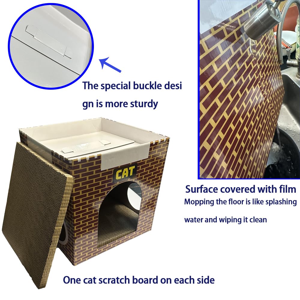 Tannran Cardboard Cat House With 2 Story Scratch Pads,Cat Play House For Indoor Toy, Scratch And Grind Claws, 12.5X12.5X12.5 Inc