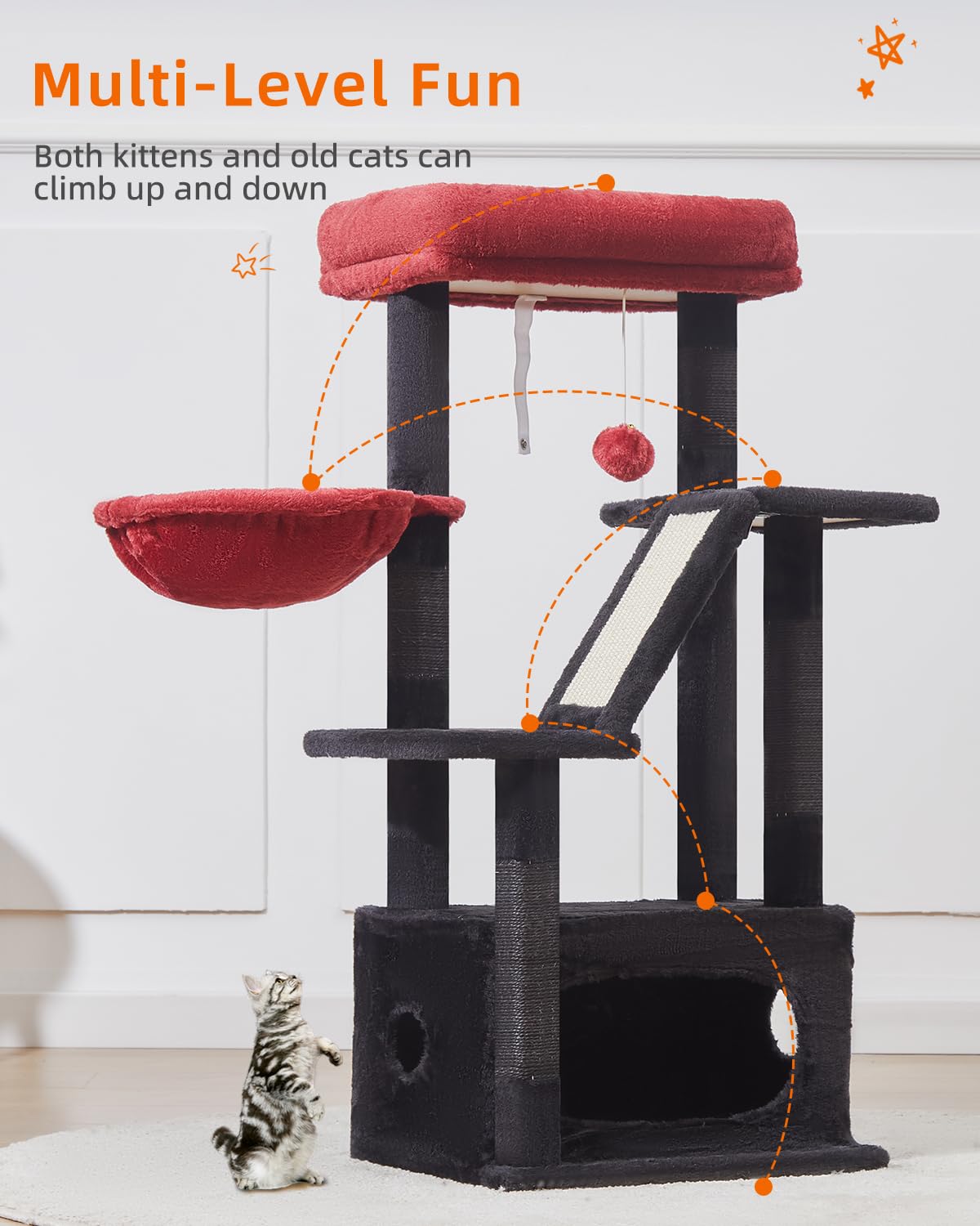 Taoqimiao Gothic Cat Tree,38.5-Inch Cat Tower For Indoor Cats,Suitable For Kittens With Luxurious Cat Condo With Adjustable Bask