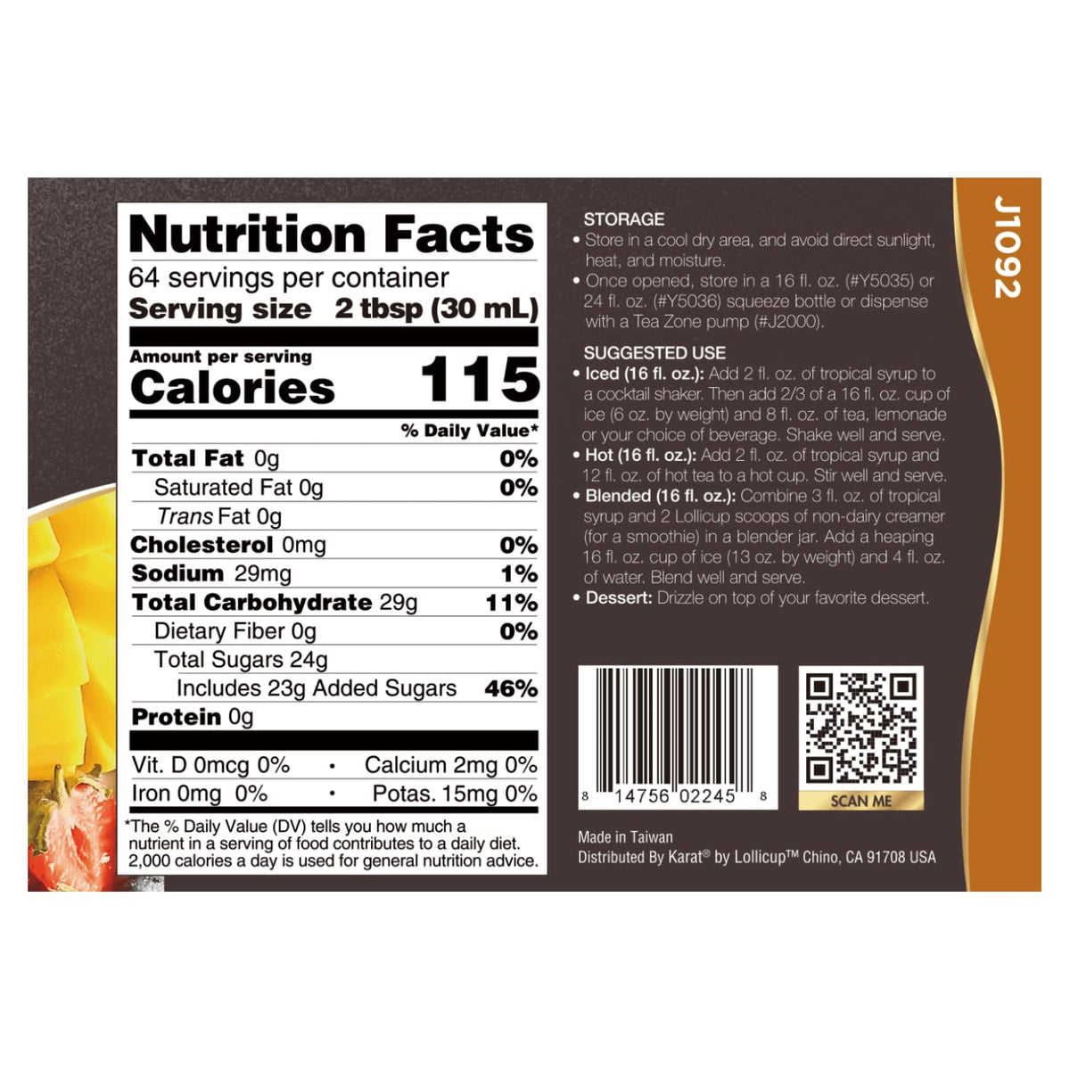 Enjoy The Exotic Flavors Of The Tropics With Tea Zone Tropical Syrup The Wonderful Blend Of Strawberries, Oranges, Bananas, And Pineapple Will Take You On Tropical Vacation To A White, Sandy Beach Tea Zone Syrups Have Many Applications And Can Be Used To Make Slushes, Smoothies, Juices, Flavored Teas, Frozen Yogurt, Shaved Ice, And Even Alcoholic Cocktails Tea Zone Syrup Bottles Can Be Equipped With A Pump Dispenser To Minimize Product Waste, Reduce Dripping, And Increase Dispensing Accuracy