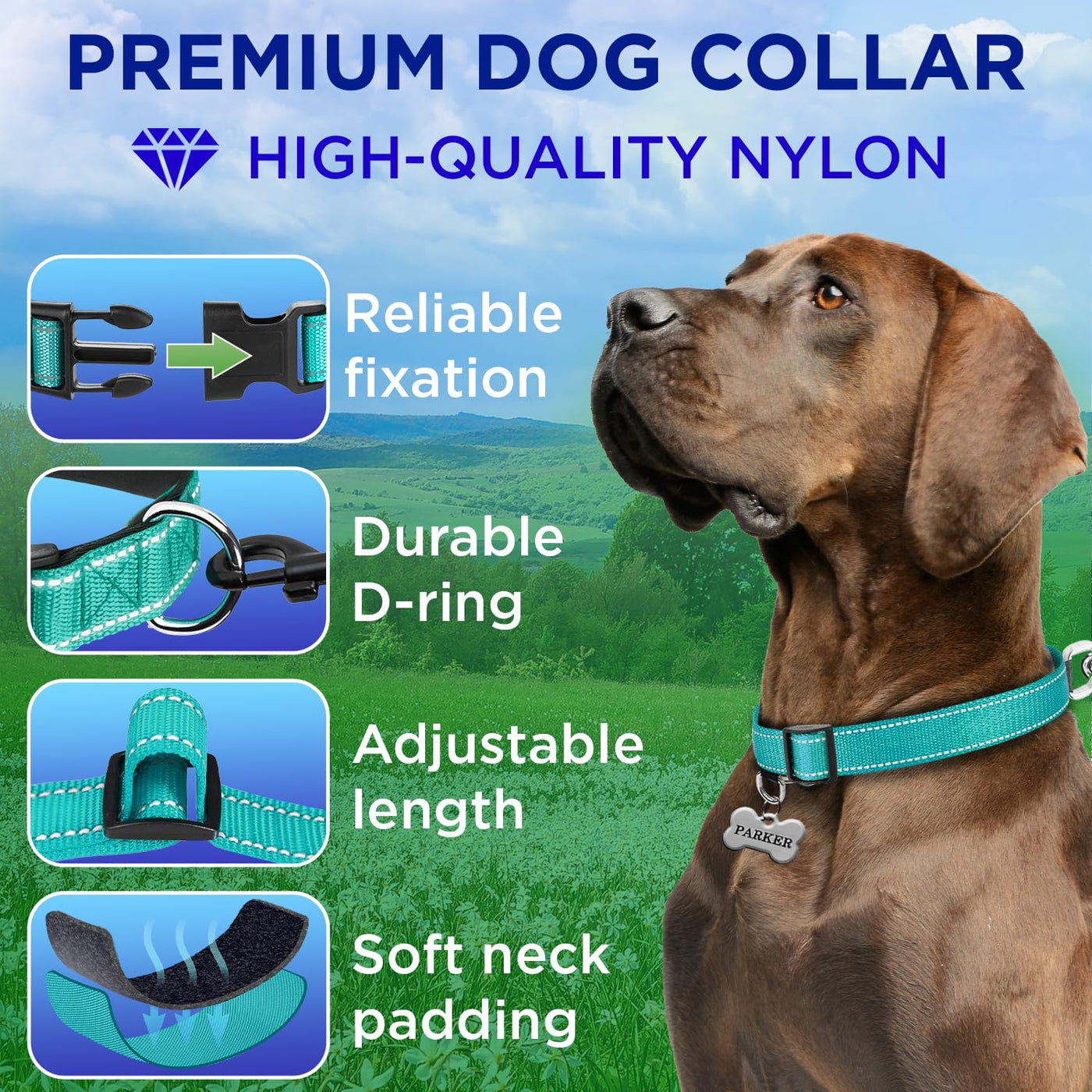 Teceum Reflective Dog Collar - Aquamarine - M - Extra Soft Padding - Basic Nylon Pet Collar - Quick Release Buckle - Fits Small,