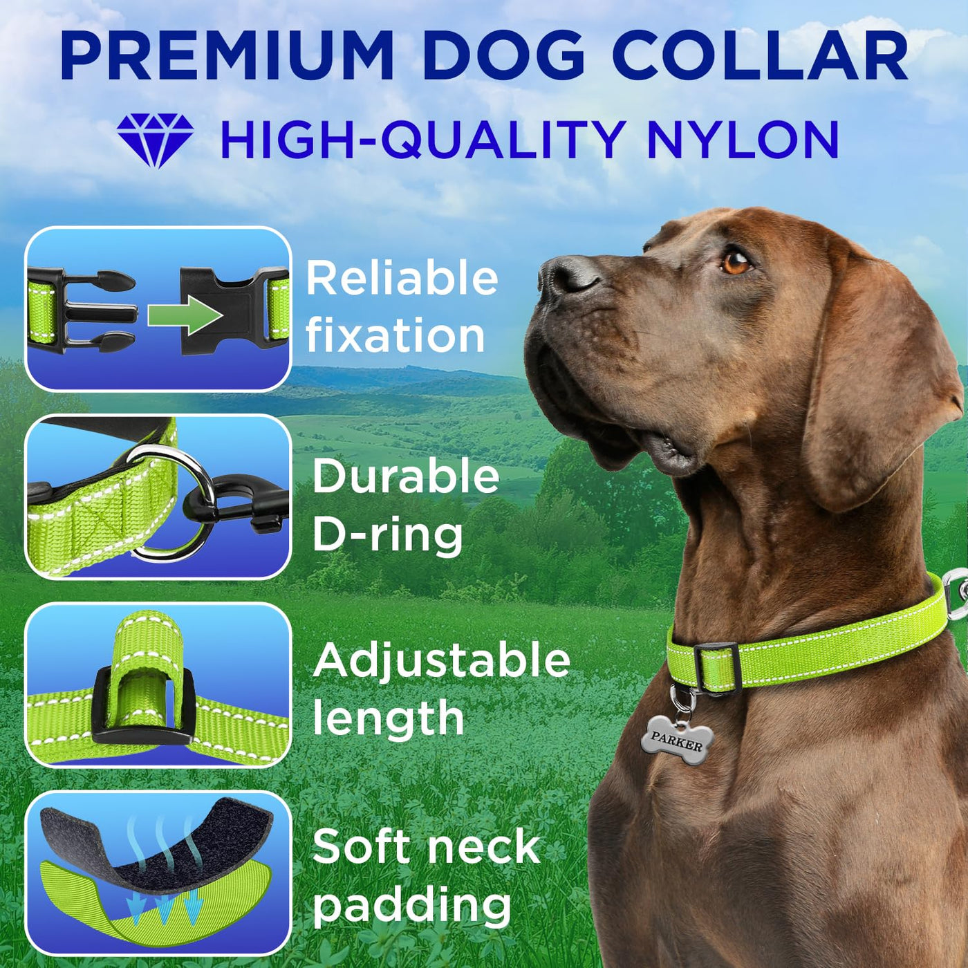 Teceum Reflective Pet Collar - Acid Green - M - Extra Soft Padding - Basic Nylon Dog Collar - Quick Release Buckle - Fits Small,