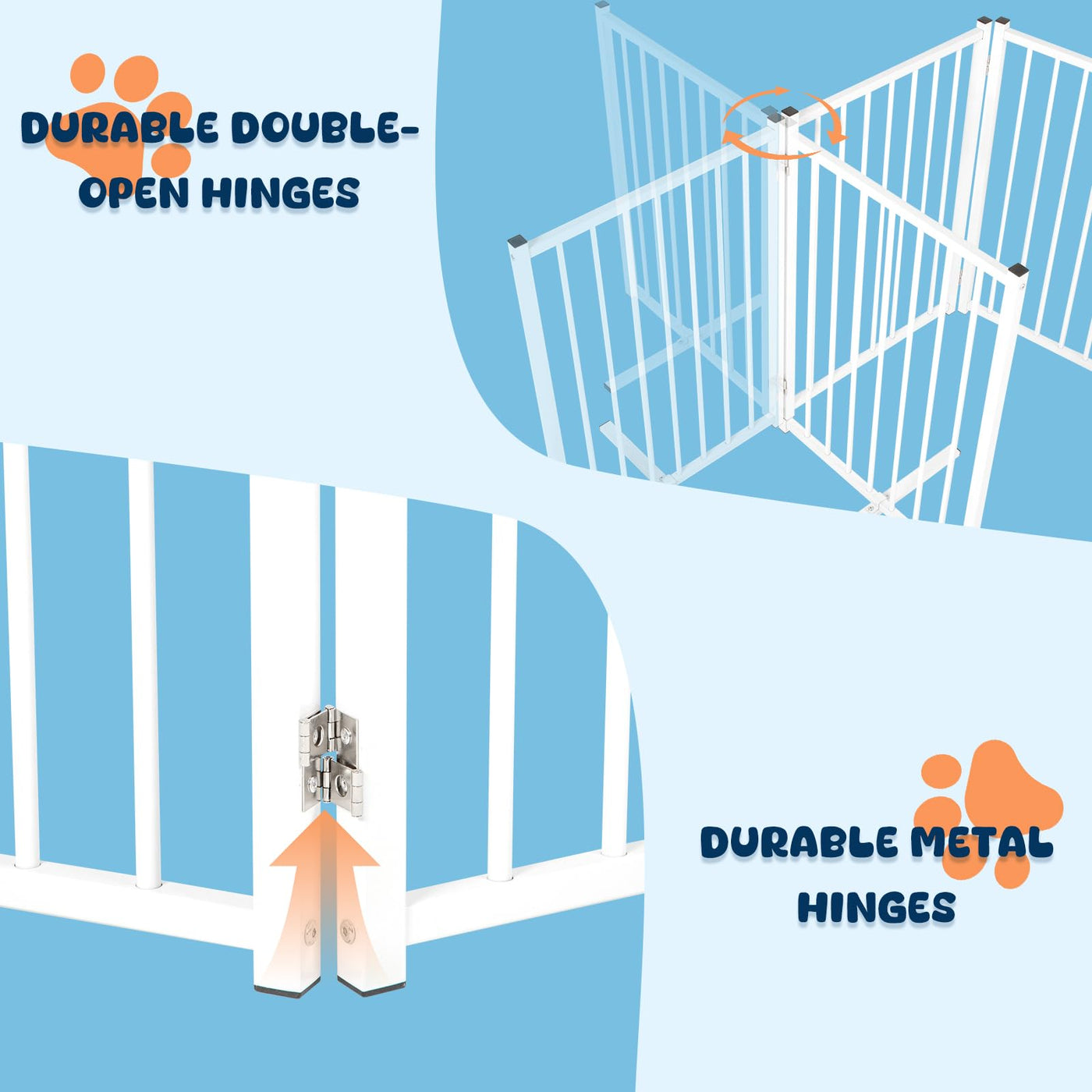 Tedeum Metal Freestanding Dog Gates,Indoor&Outdoor Pet Fences For Puppy Dogs,Extra Wide Freestanding Dog Gate For Doorways,House,Stairs,Porch,Deck,Yard(4 Panels 24''H 93''W) White