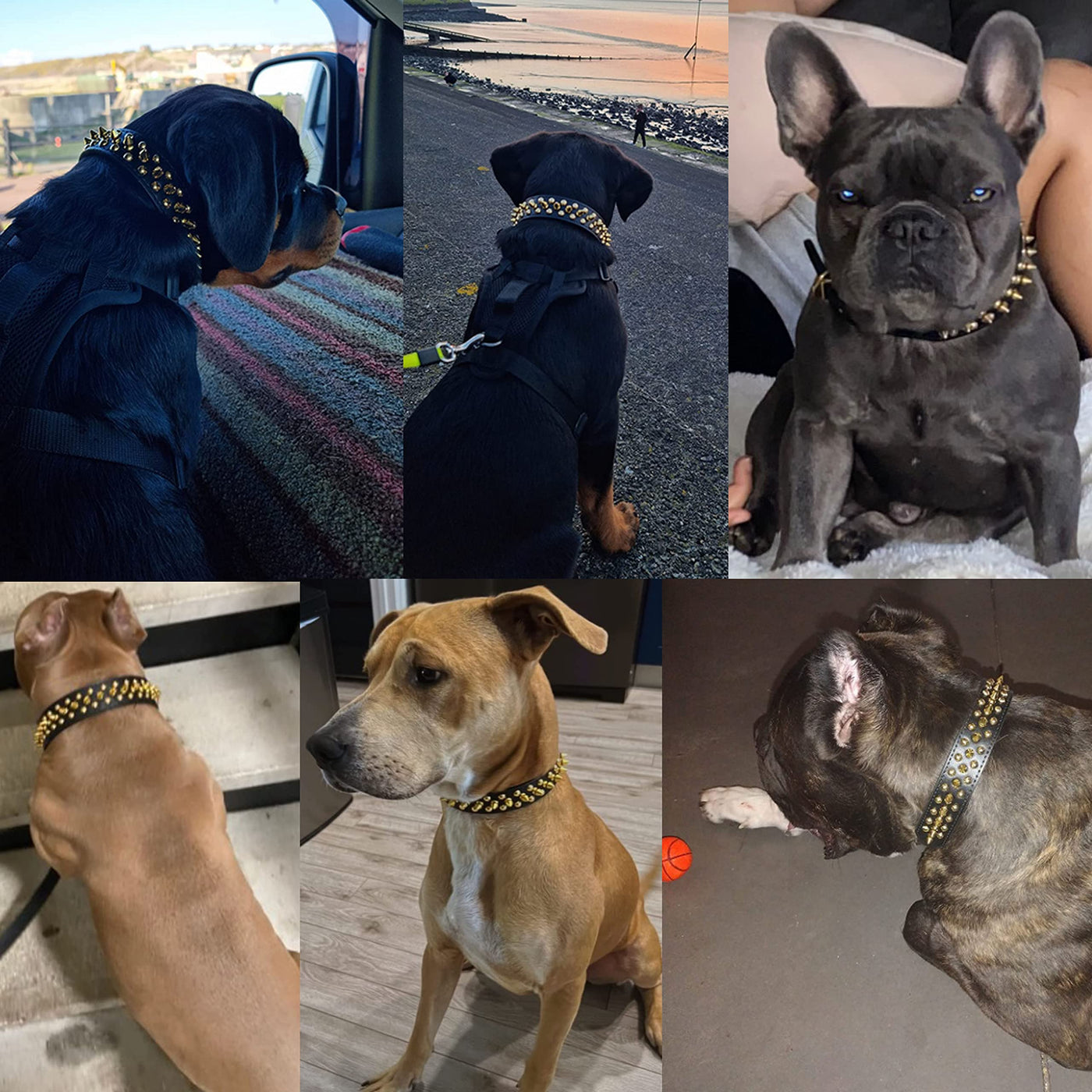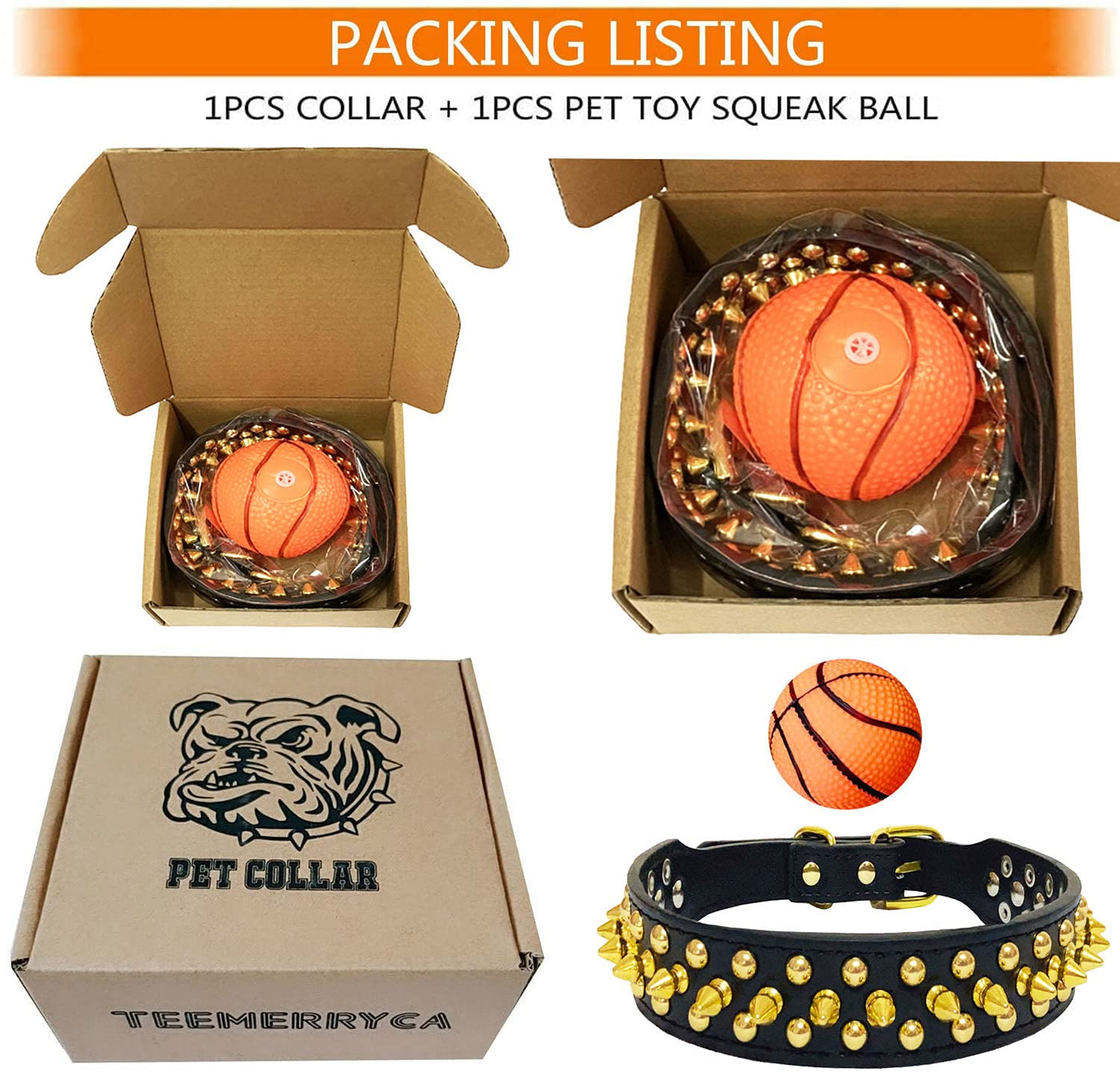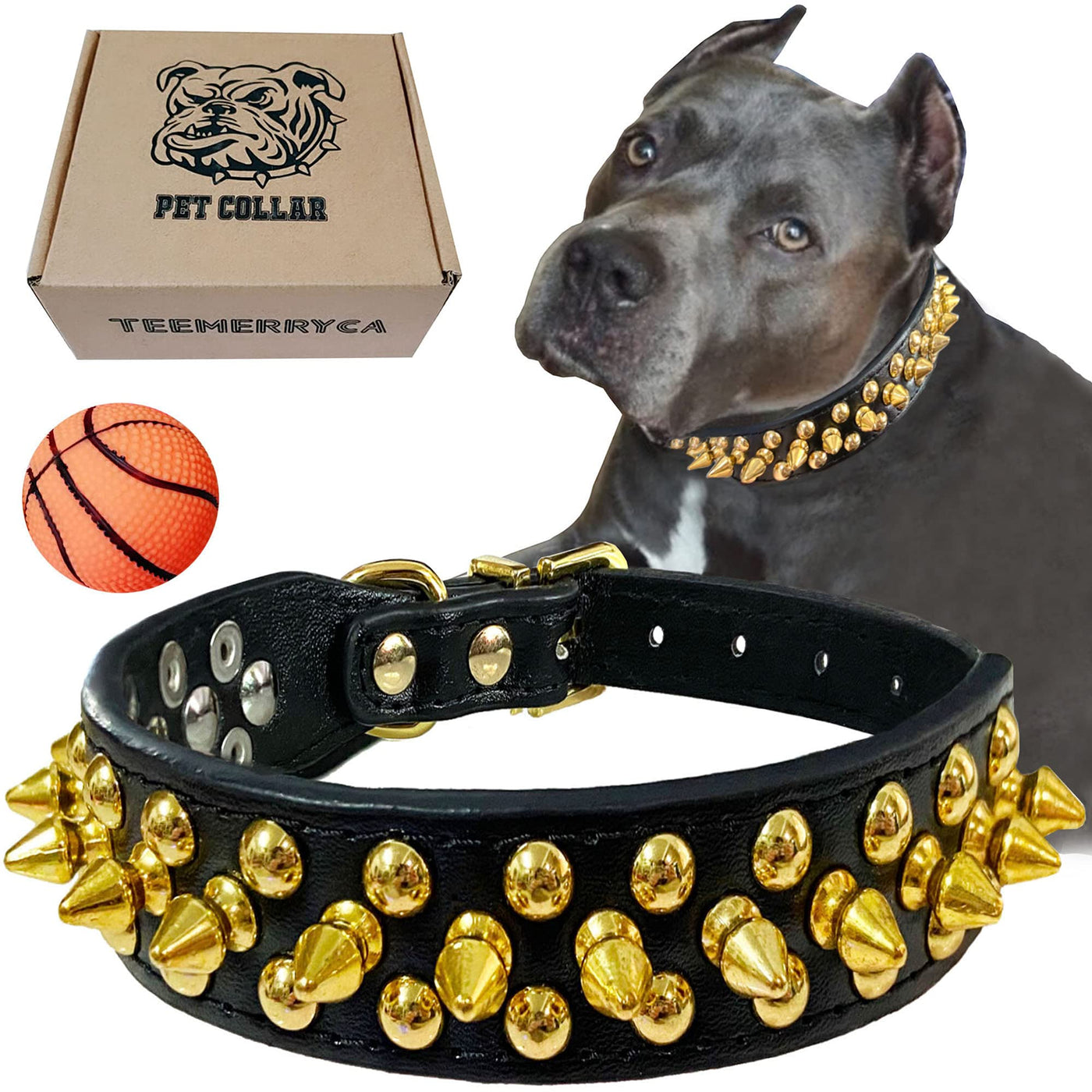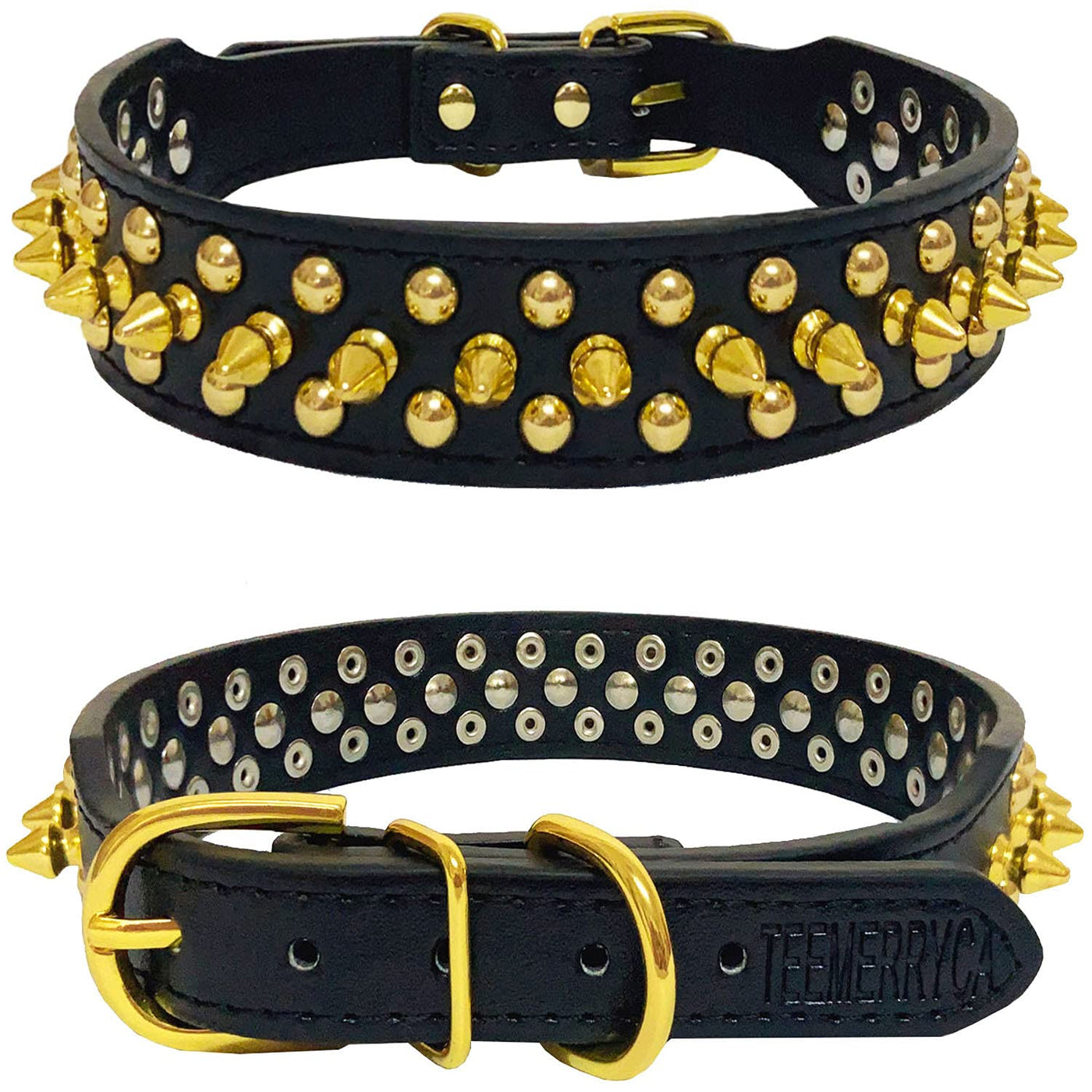 Teemerryca Black Leather Dog Collar With Gold Spikes For Small Medium Large Pets, Pit Bulls/Bulldog, Keep Dog Safe From Grabbing