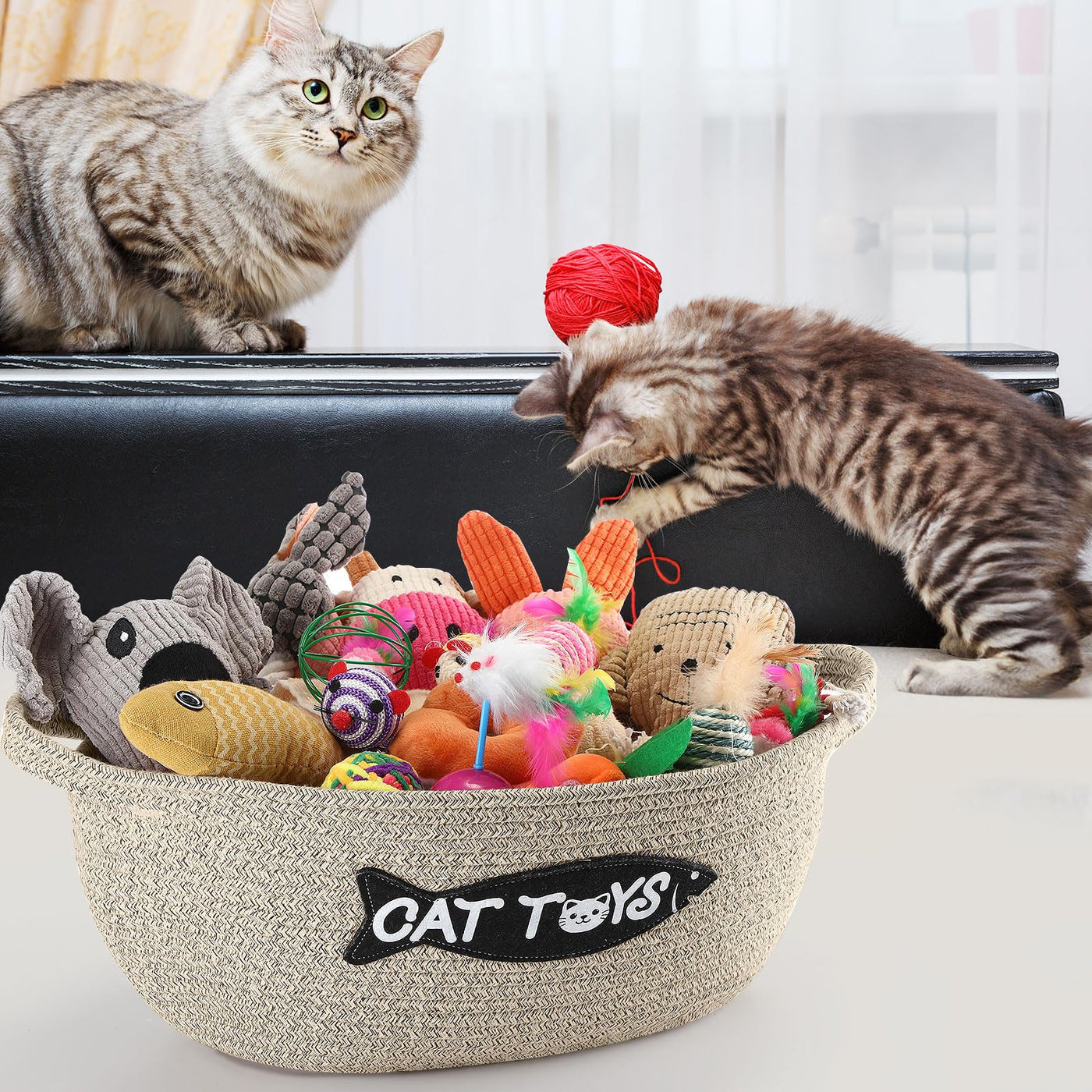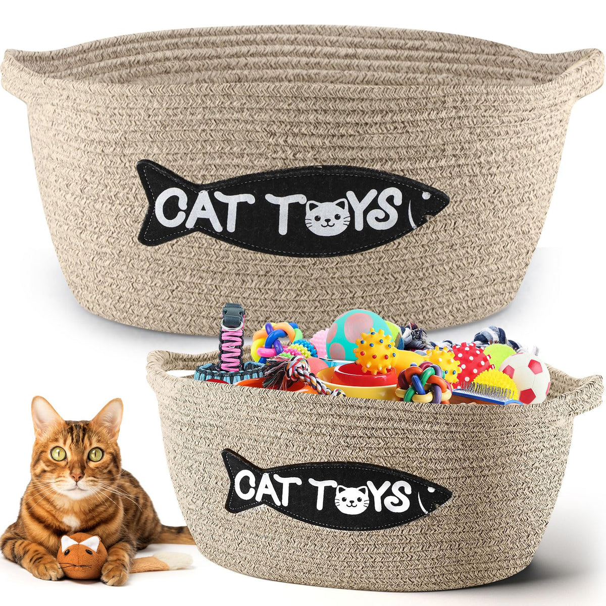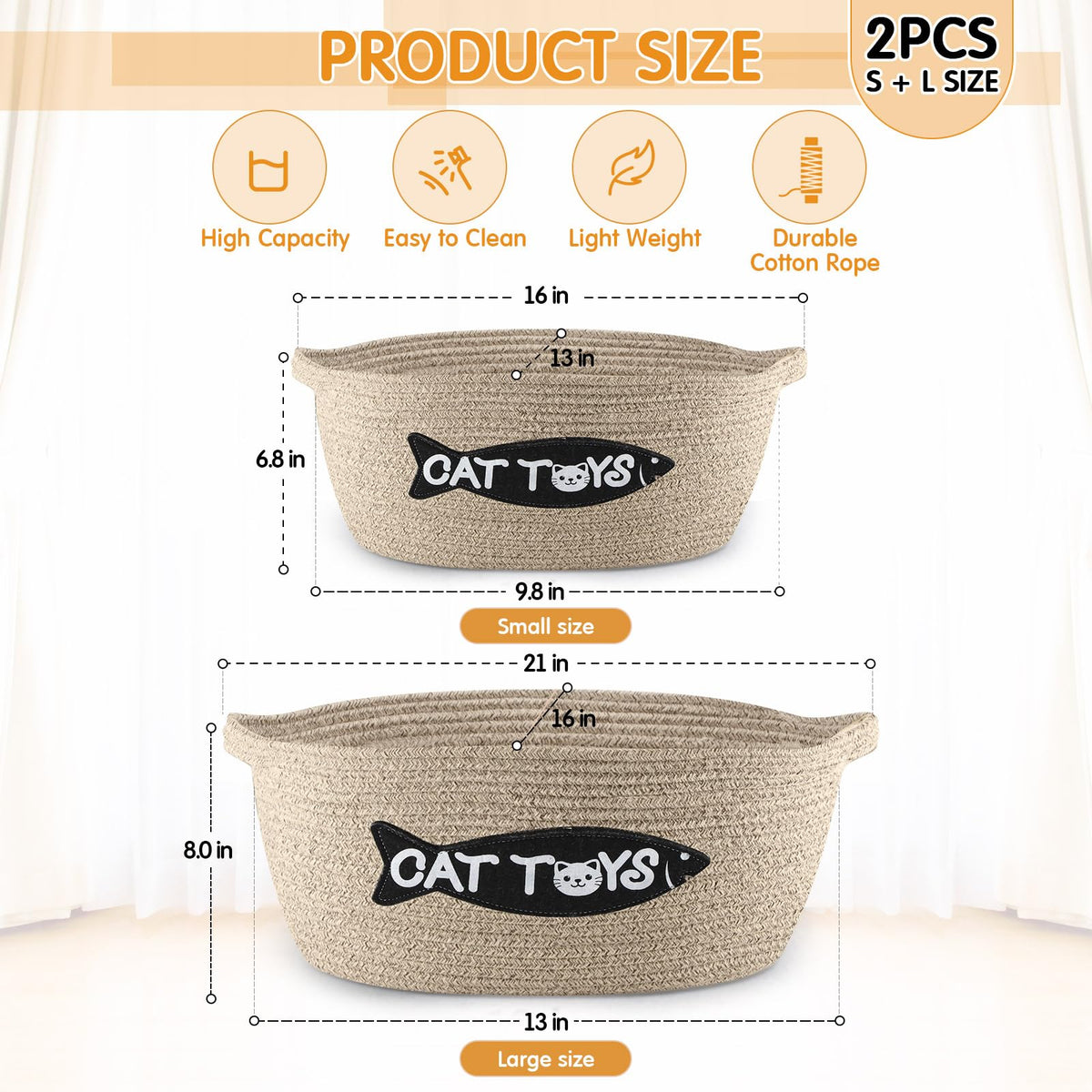 Teenyyou 2 Pcs Cat Toy Basket Multi-Size Chew Proof Cotton Rope Pet Interactive Toys Bin Storage Box Organizer For Cat Treats Cl