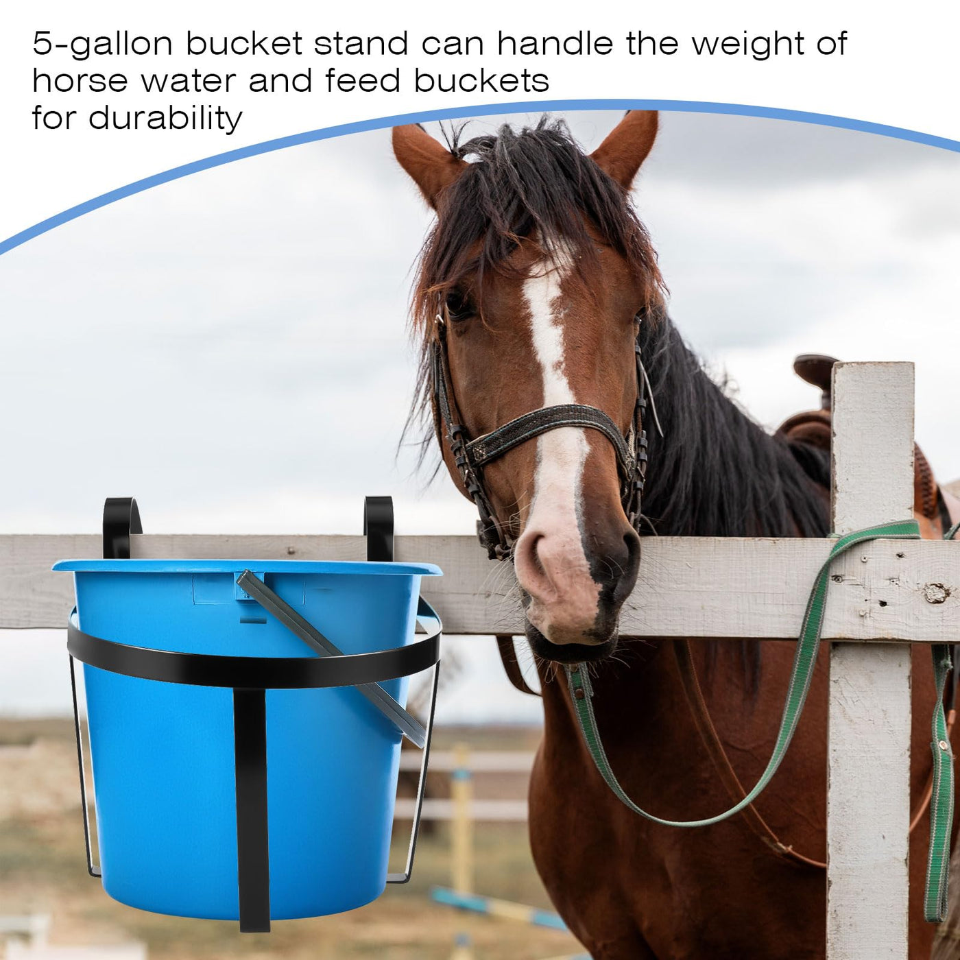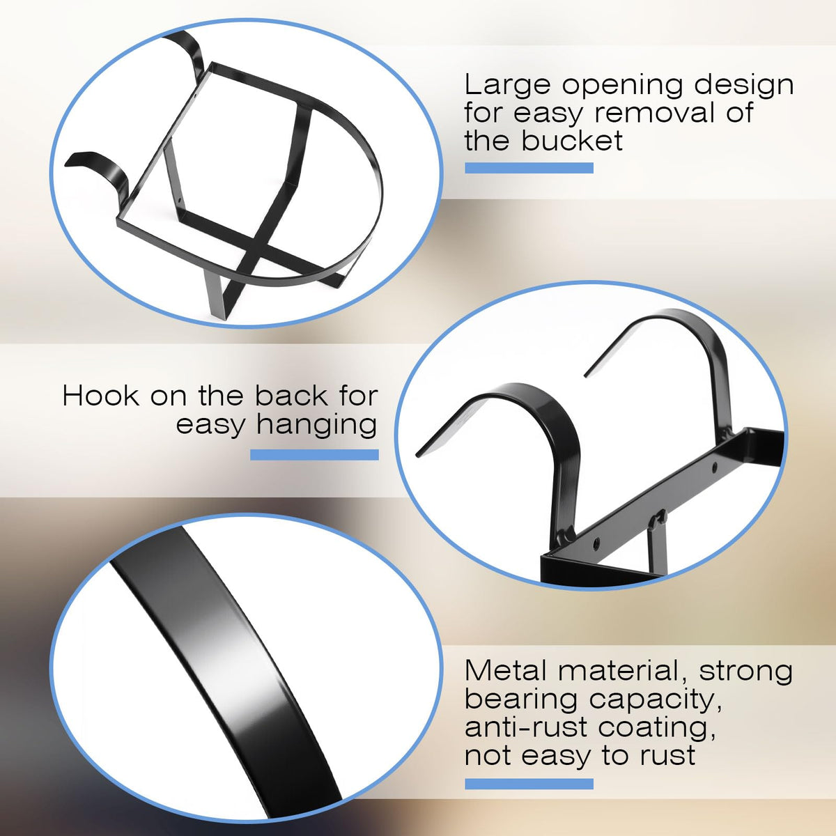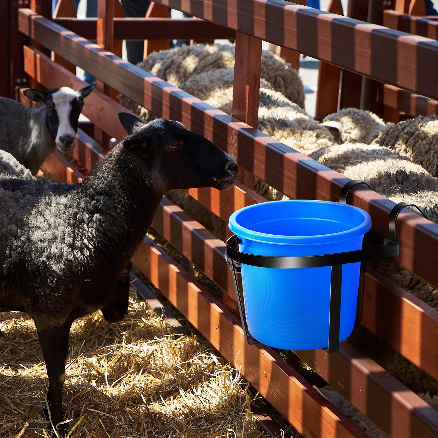 Teenyyou 2 Pcs Heavy Duty Bucket Holder with Hook Metal Bucket Hangers for 5 Gallon Horse Water and Feed Wall Mount Livestock Pa