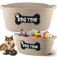 Teenyyou 2 Pcs Toy Basket Handwoven Cotton Rope Pet Toys Storage Cute Patch Design Chew Proof Toy Clothing Holder Organizer Box
