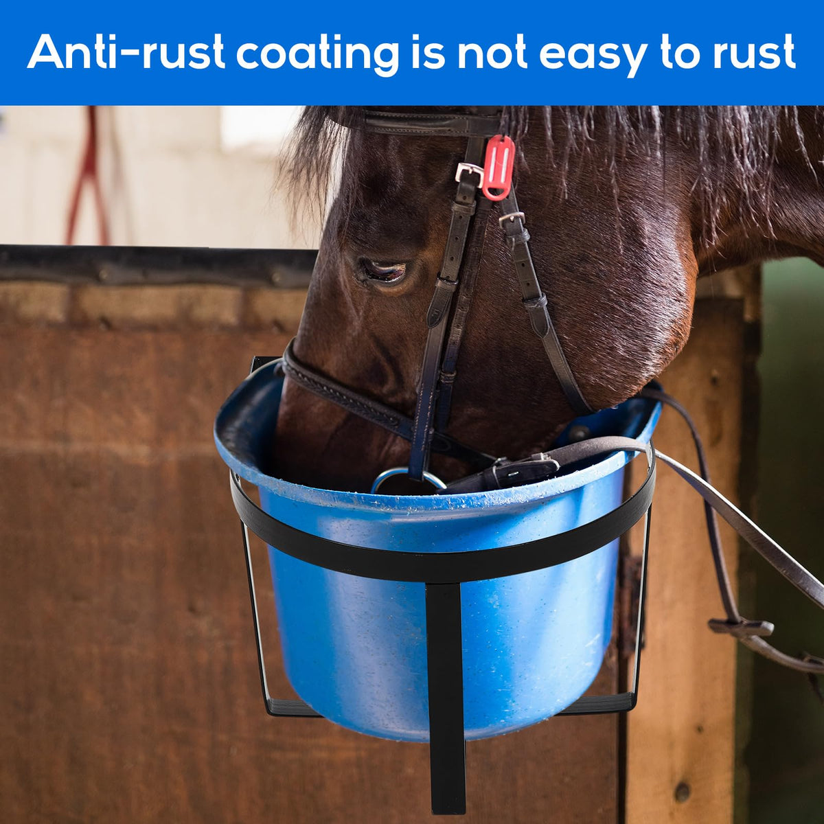 Features: One of the standout features of this horse water bucket holder is its simple installation process. Each unit is pre-welded, saving you the hassle of manual assembly. Using the included nails, you can quickly and securely mount these 5-gallon bucket holders to any wall. This setup ensures that your horse feed bucket or water container remains stable, reducing the risk of spills and waste. Tailor-made for both indoor and outdoor applications, this bucket organizer set equips you with the adaptability to meet your feeding needs wherever required. From barn interiors to outdoor paddocks, these reliable 5-gallon bucket accessories provide indispensable support for your equestrian activities, making them an essential addition for those managing 5-gallon buckets bulk. Specifications: Material: metal Color: black Size: about 12.9 x 12 x 8.9 inches/ 328 x 304 x 225 mm Package includes: 4 x Heavy Duty Metal Bucket Holder Notes: Manual measurement, please allow slight errors on size. The color may exist a slight difference due to different screen displays.