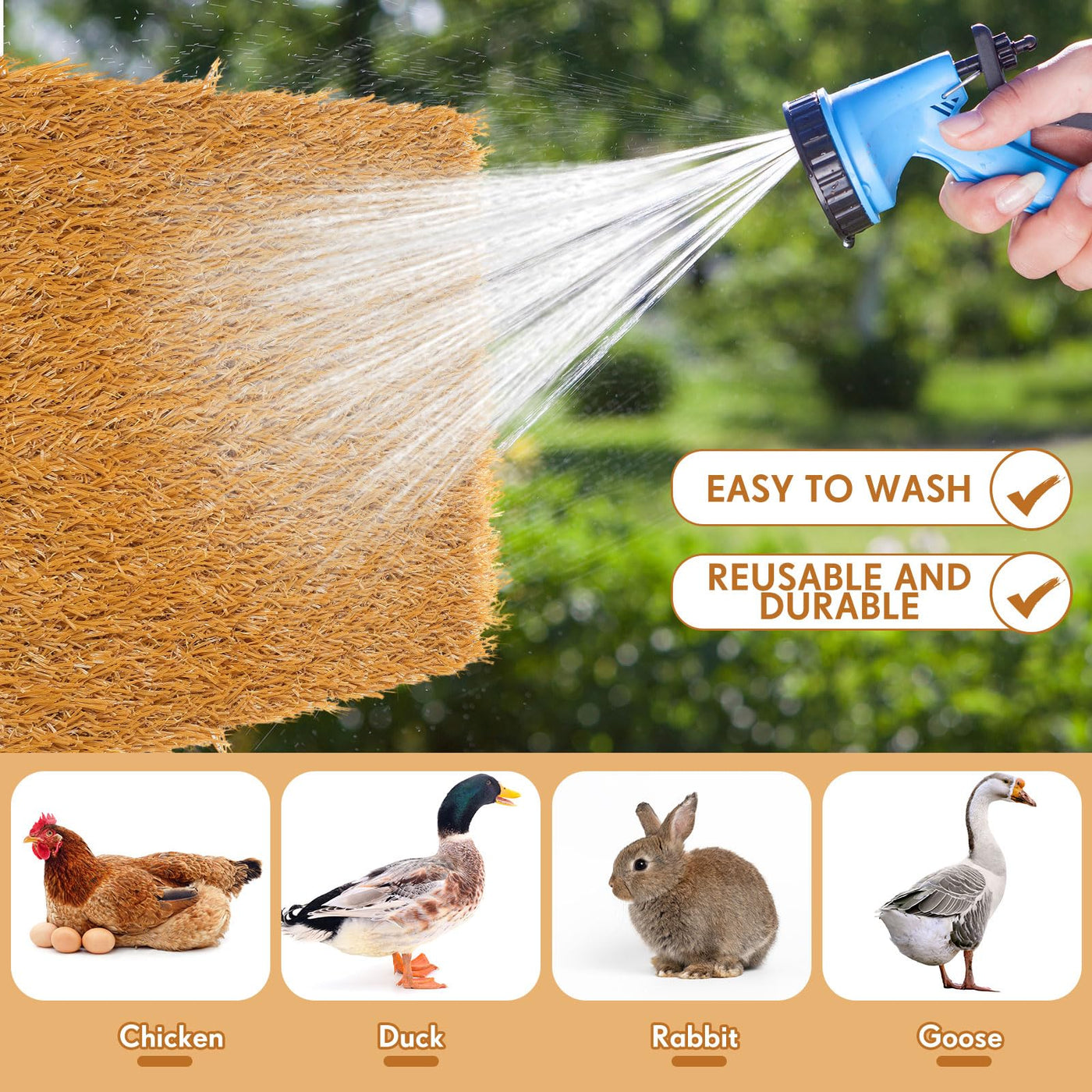 Features: Quality material: The artificial chicken grass rugs are made of quality plastic, not easy to fade, durable and sturdy, long life and easy to clean. Unlike other nesting materials, such as aspen wood chips, they can easily become soiled and broken and have a short lifespan. Good breathability: Our washable chicken nest box liners are breathable and dry quickly after washing, providing a fresh and clean environment for hens. It also prevents your other pets paws from getting wet after use, making it easy to use the pet nesting pads. Specifications: Material: plastic Color: brown Size: 13 x 13 x 1.18 inches Package include: 6 x Chicken nesting box pads Notes: Manual measurement, please allow slight errors on size. The color may exist a slight difference due to different screen displays.