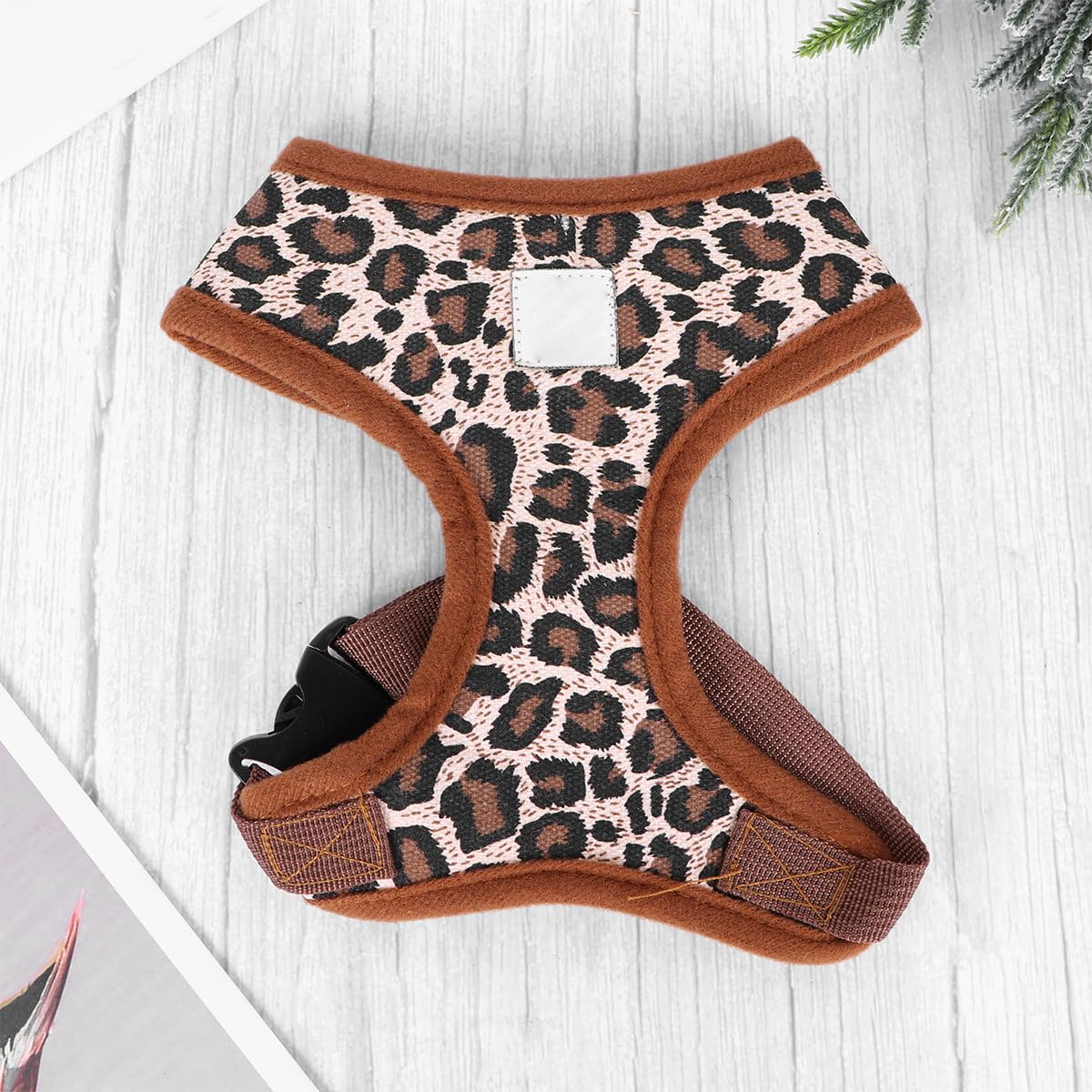 Tehaux Pet Dog Harness Adjustable Leopard Print Canvas Chest Harness For Small Pets Comfortable Fit, Size S