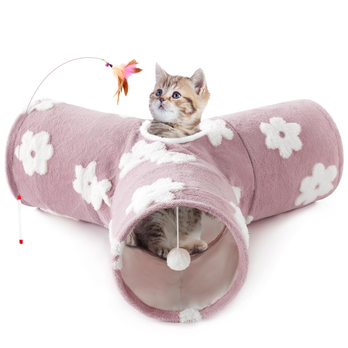 Tempcore Flannel Pet Cat Tunnel Tube Cat Toys 3 Way Collapsible, Cat Tunnels For Indoor Cats, Kitty Tunnel Bored Pet Toys Peek H