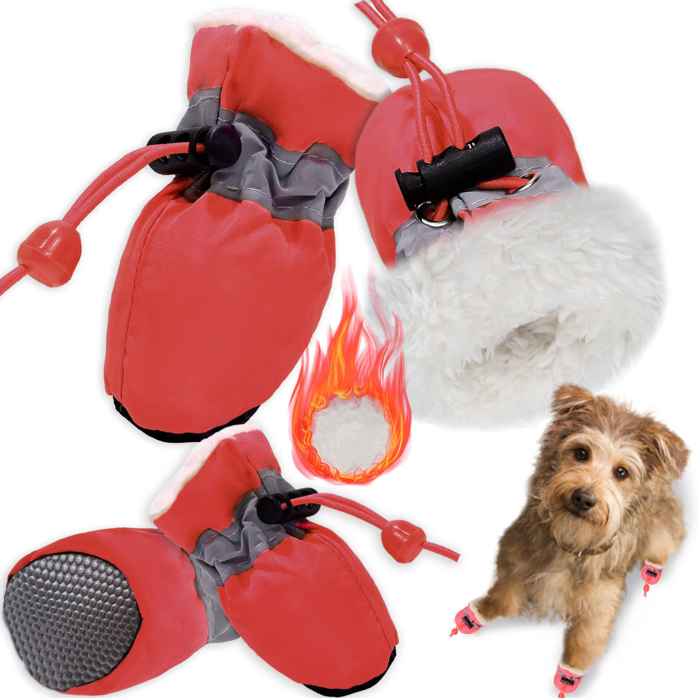 Teozzo Dog Boots Dog Snow Boots For Winter Dogs Boots & Paw Protector Warm Dog Booties For Puppy With Reflective Strip Dog Shoes