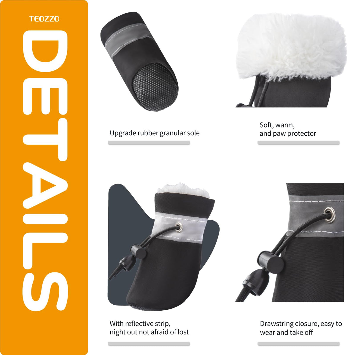 Teozzo Dog Boots Dog Snow Boots For Winter Dogs Boots & Paw Protector Warm Dog Booties For Puppy With Reflective Strip Dog Shoes For Small Medium Size Dogs 4Pcs Black Size4