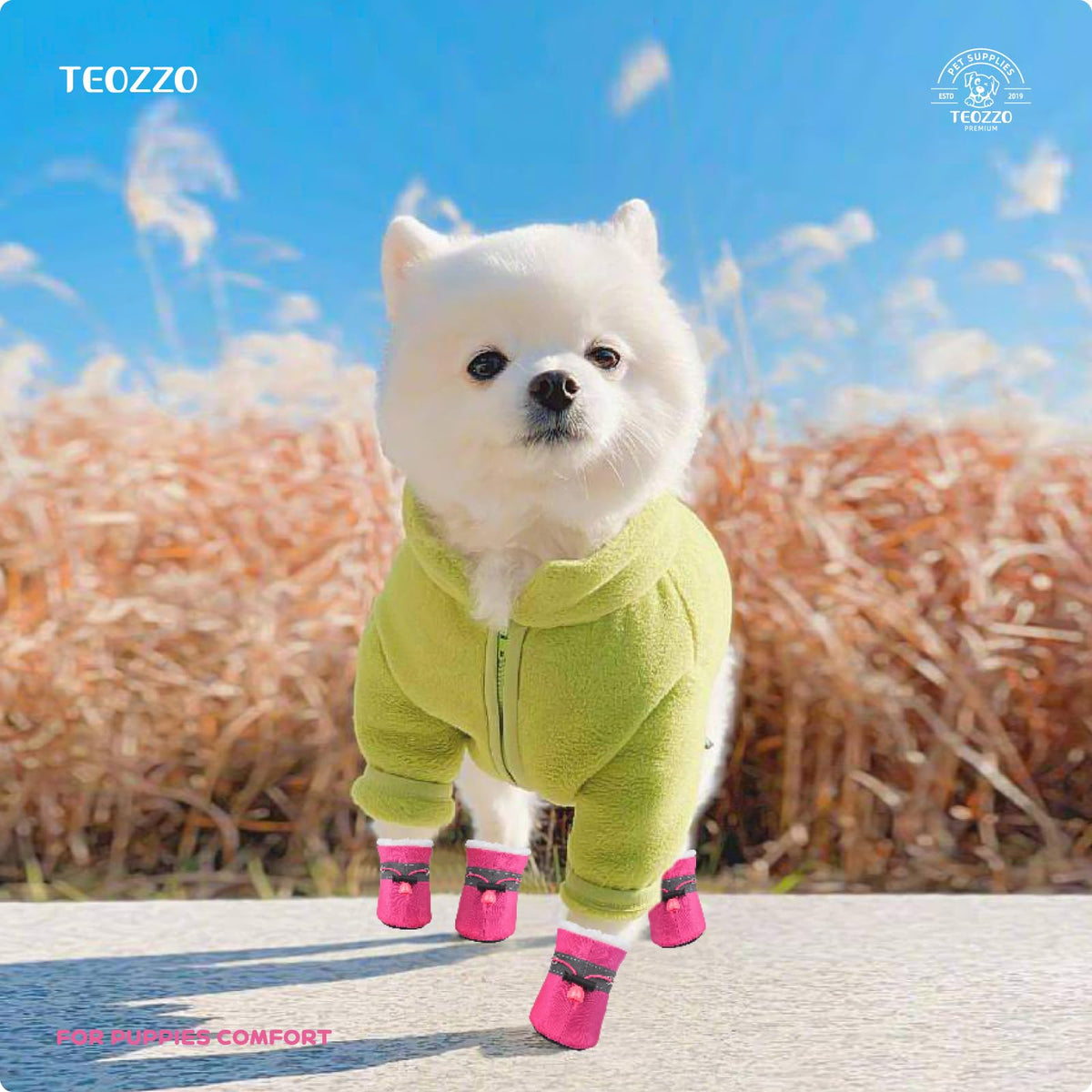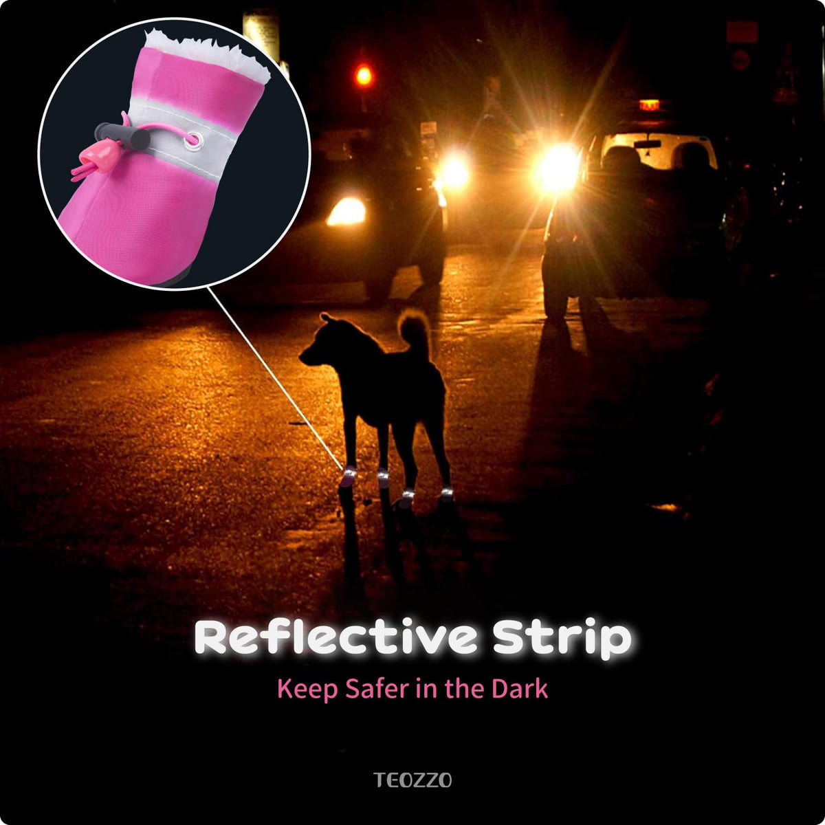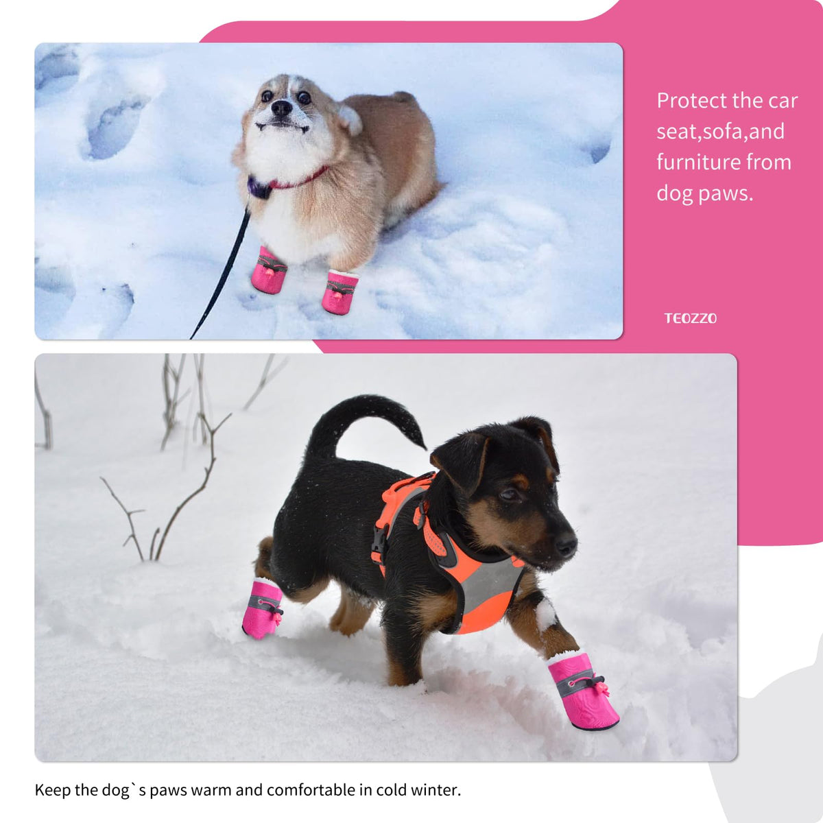 Teozzo Dog Boots Dog Snow Boots For Winter Dogs Boots & Paw Protector Warm Dog Booties For Puppy With Reflective Strip Dog Shoes For Small Medium Size Dogs 4Pcs Pink Size6