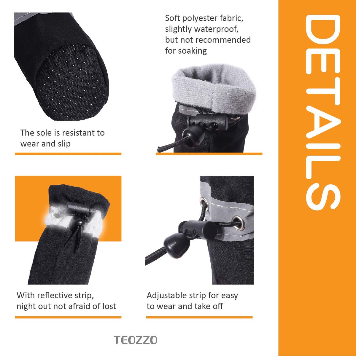 Teozzo Dog Boots & Paw Protector, Anti-Slip Sole Winter Snow Dog Booties With Reflective Straps Dog Shoes For Small Medium Dogs 4Pcs Black 7