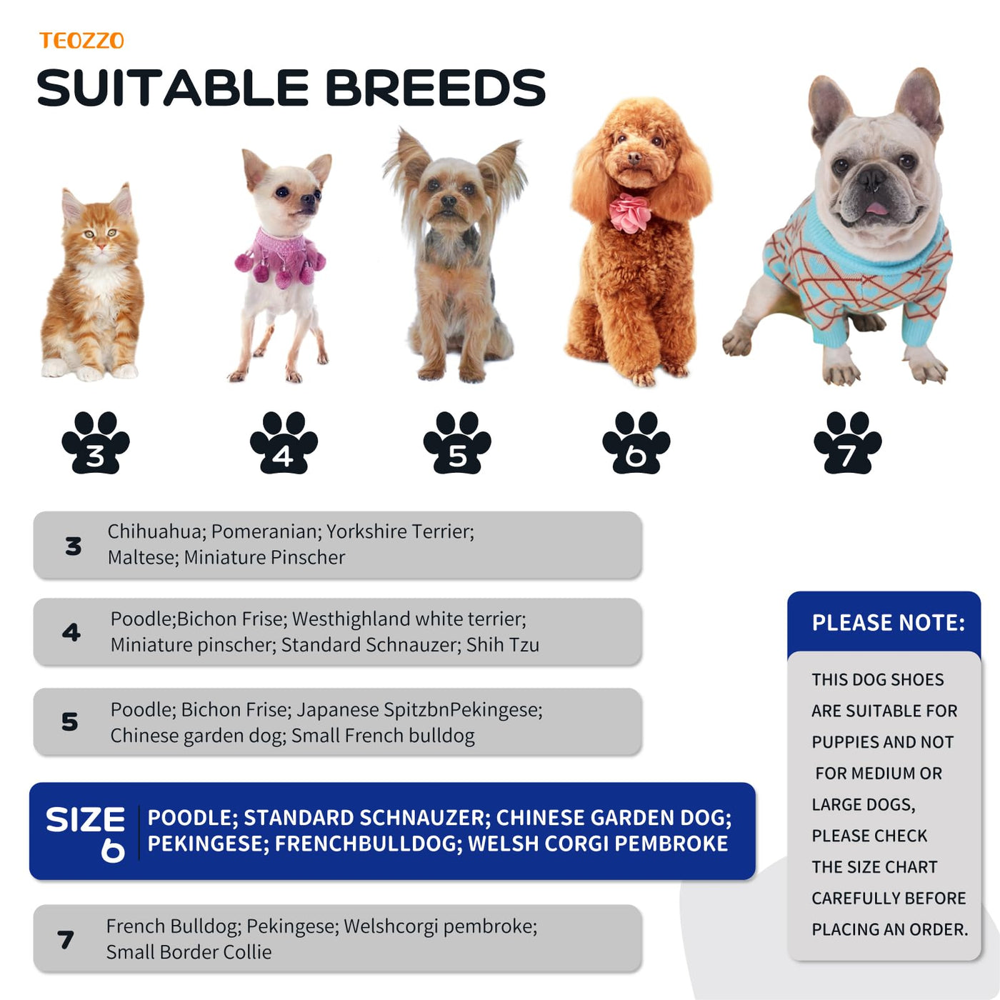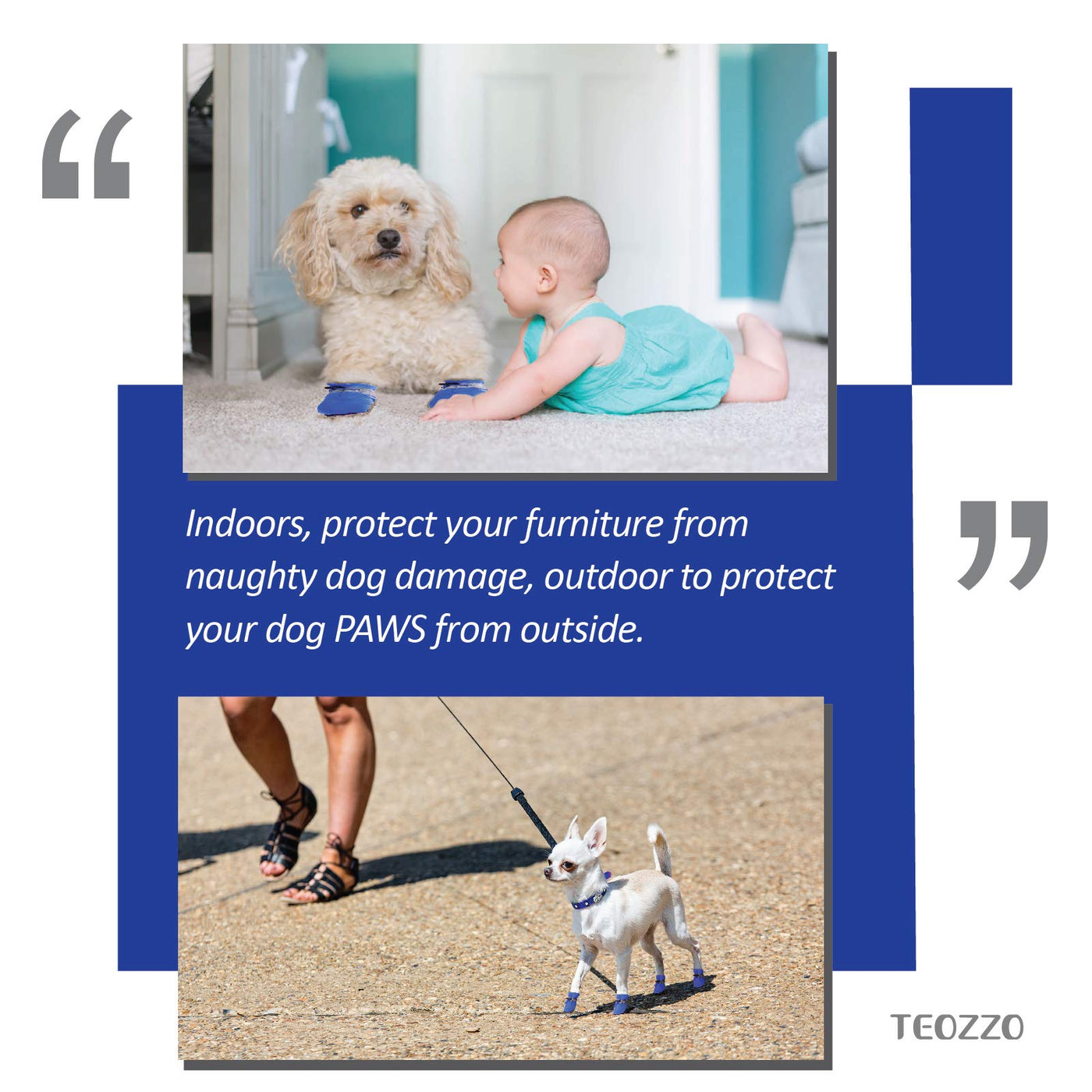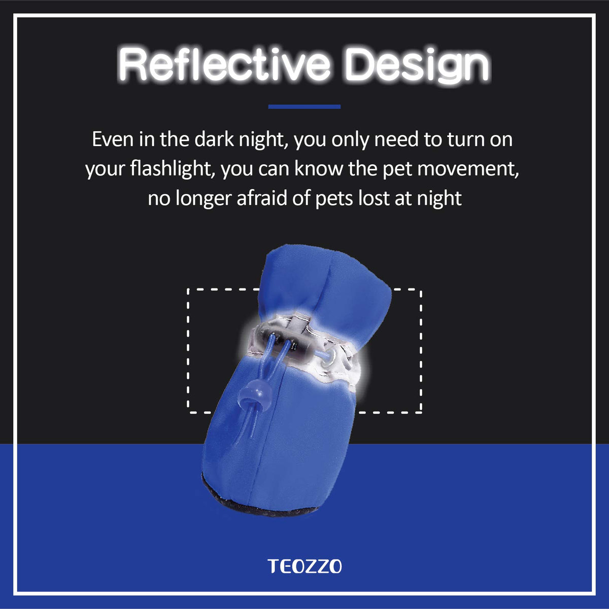 Teozzo Dog Boots & Paw Protector, Anti-Slip Sole Winter Snow Dog Booties With Reflective Straps Dog Shoes For Small Medium Dogs 4Pcs Blue 6