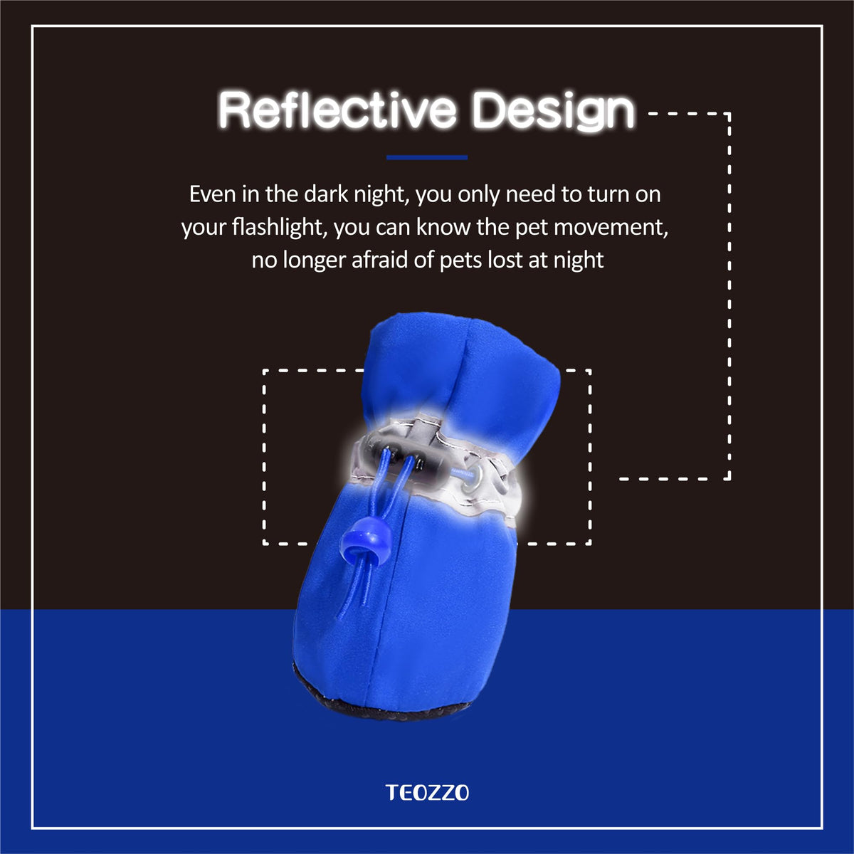 Teozzo Dog Boots &Amp; Paw Protectors Details:&Nbsp;1.&Nbsp;The Dog Shoes Use A Durable Non-Slip Granular&Nbsp;Sole To Provide Stability And Traction, Helping Pets Maintain Mobility And Stability On Tiles And Sand. Effectively Protect Dog Paws From Harm.2.&Nbsp;This Winter Dog Boot, With Super Soft Fleece Inside, Provides Extra Comfort, Keeps Paws Warm In Cold Weather.3.&Nbsp;These Dog Boots Can Also Be Applied In Summer, Protected Dog Paws From Hot Pavement, Stones.4.&Nbsp;Our Dog Paw Protectors Are Not Waterproof But Can Keep Paws Dry, Warm, And Breathable.5.&Nbsp;Reflective Lines Enhance Visibility All Night, Ergonomic Shape, Maximize The Comfort And Support Your Dog'S Paws Need. To Ensure The Safety Of The Dog.