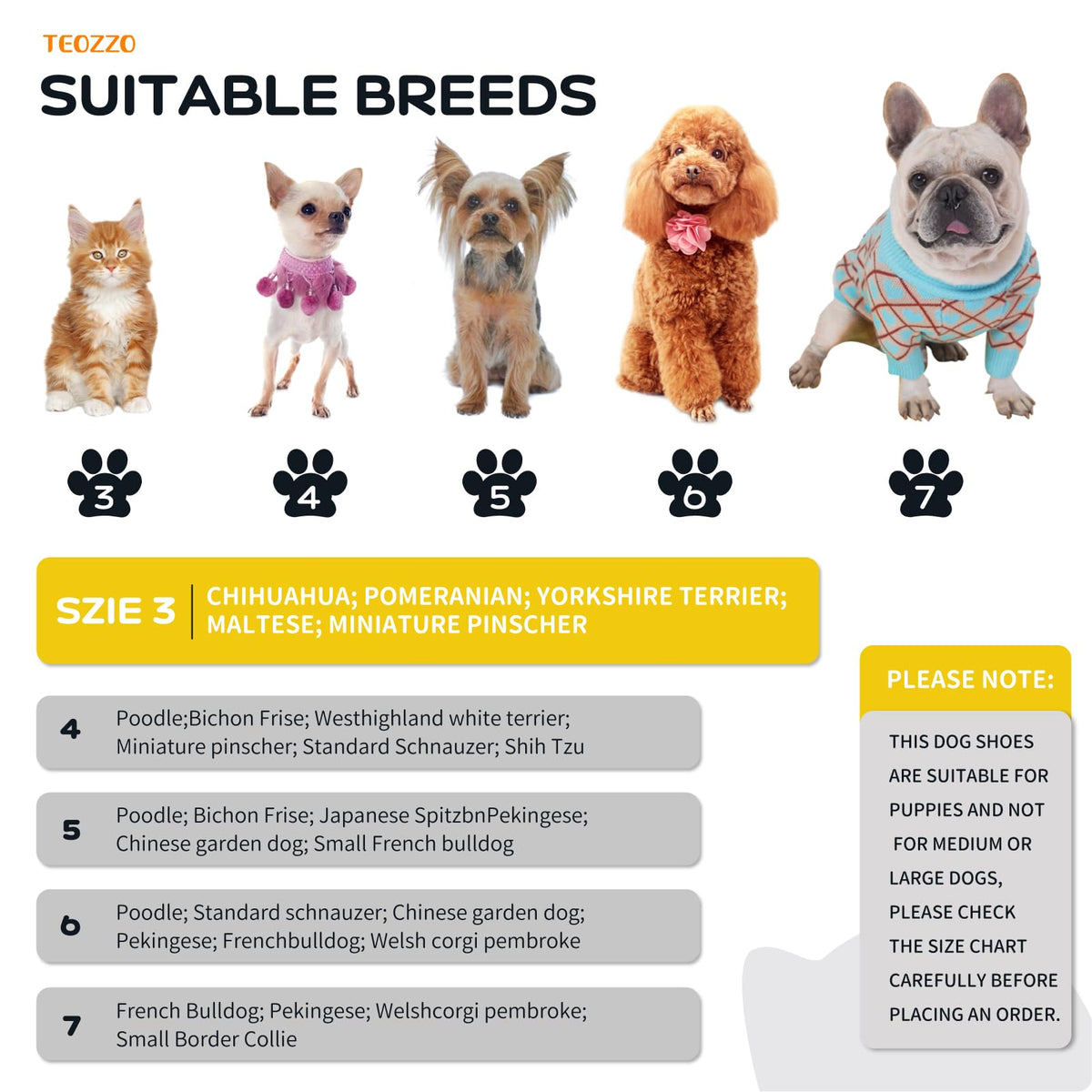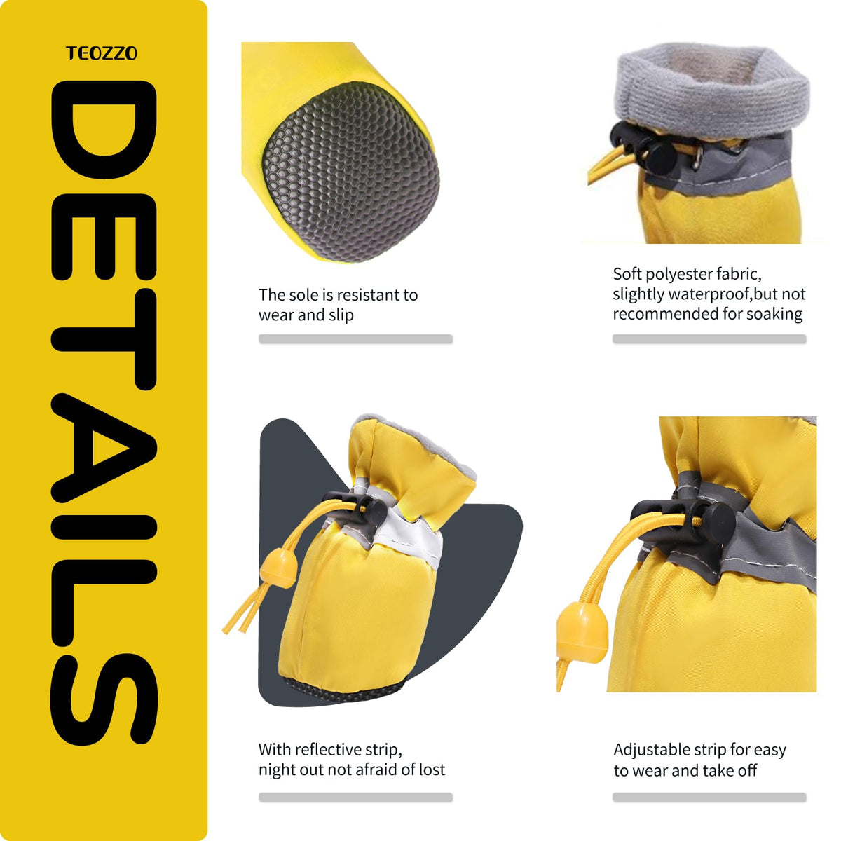 Teozzo Dog Boots &Amp; Paw Protectors Details:&Nbsp;1.&Nbsp;The Dog Shoes Use A Durable Non-Slip Granular&Nbsp;Sole To Provide Stability And Traction, Helping Pets Maintain Mobility And Stability On Tiles And Sand. Effectively Protect Dog Paws From Harm.2.&Nbsp;This Winter Dog Boot, With Super Soft Fleece Inside, Provides Extra Comfort, Keeps Paws Warm In Cold Weather.3.&Nbsp;These Dog Boots Can Also Be Applied In Summer, Protected Dog Paws From Hot Pavement, Stones.4.&Nbsp;Our Dog Paw Protectors Are Not Waterproof But Can Keep Paws Dry, Warm, And Breathable.5.&Nbsp;Reflective Lines Enhance Visibility All Night, Ergonomic Shape, Maximize The Comfort And Support Your Dog'S Paws Need. To Ensure The Safety Of The Dog.