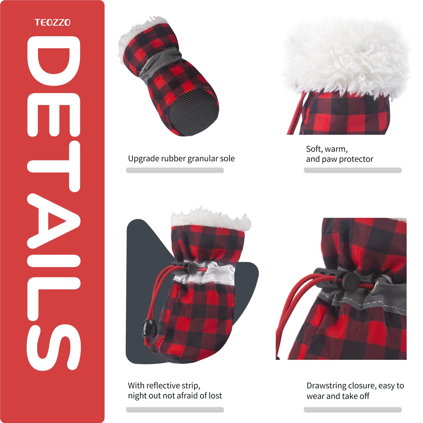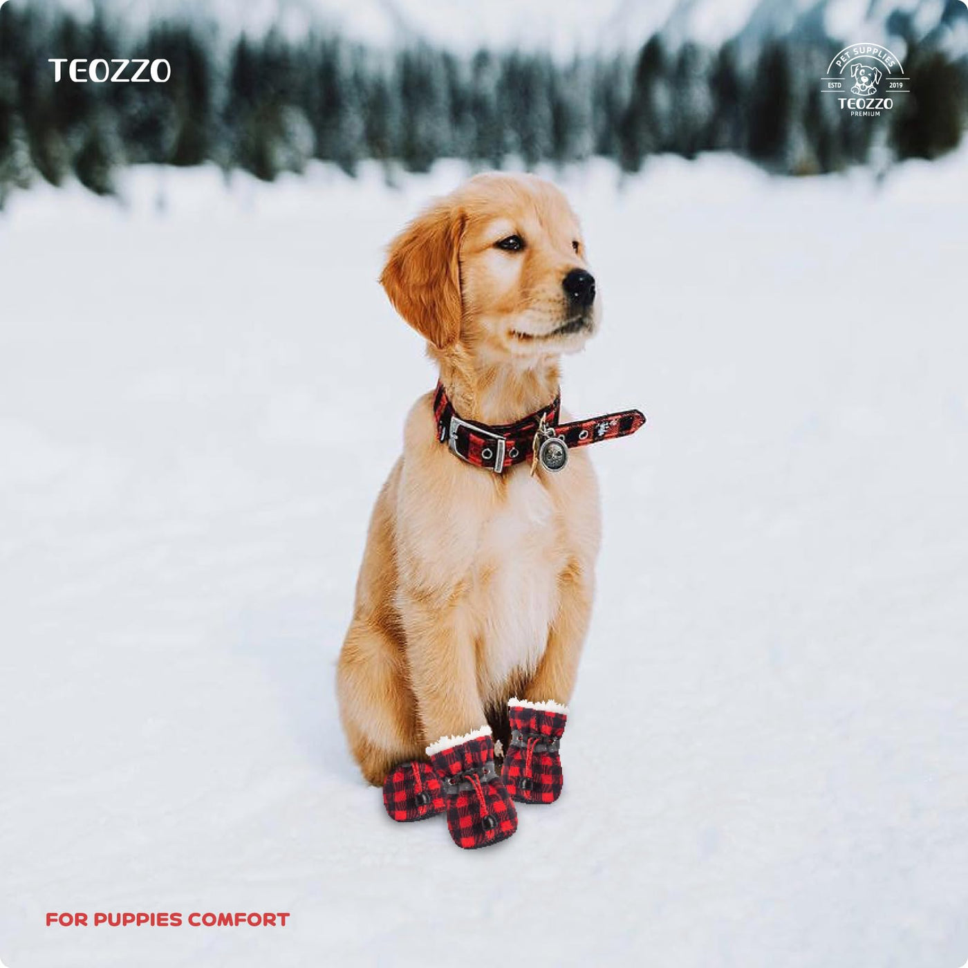 Teozzo Dog Snow Boots Dog Boots For Small Medium Size Dogs Booties Paw Protector Warm Dog Shoes For Puppies 4Pcs Black & Red Siz