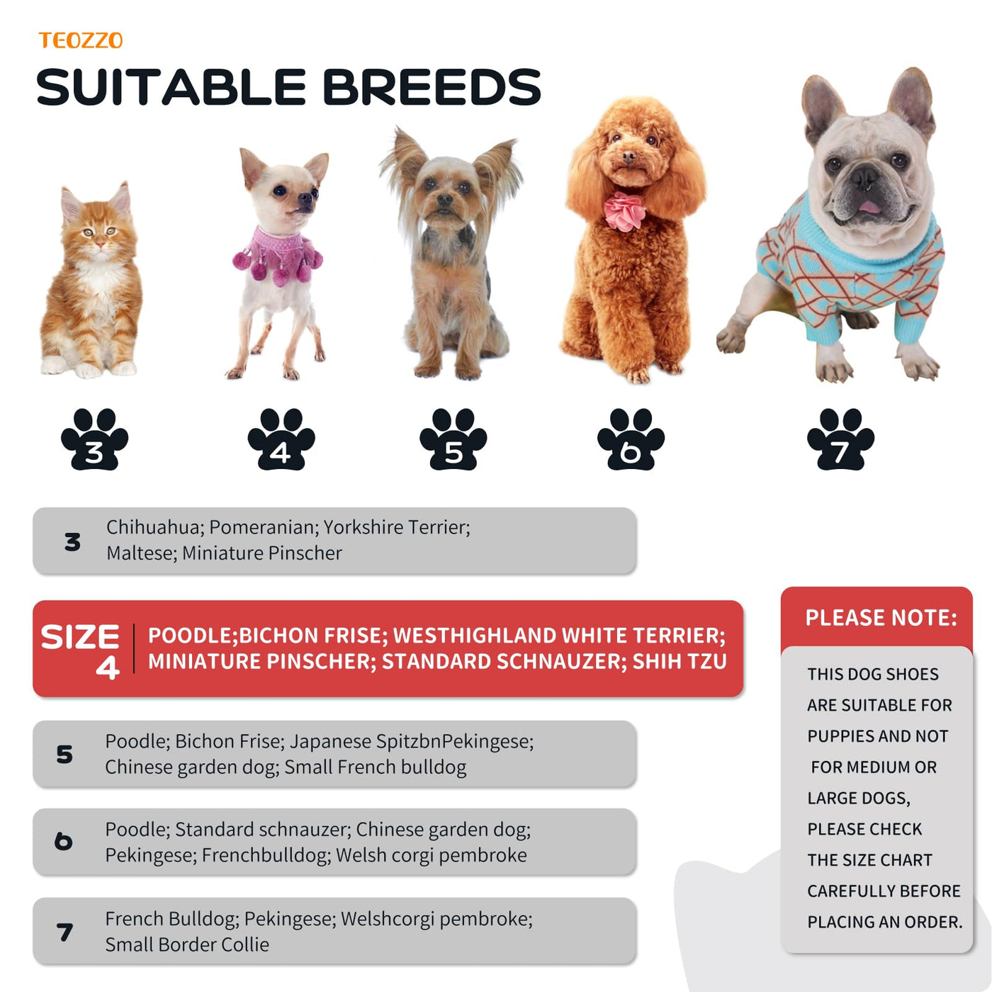 Teozzo Dog Boots &Amp; Paw Protectors Details:&Nbsp;1.&Nbsp;The Dog Shoes Use A Durable Non-Slip Granular&Nbsp;Sole To Provide Stability And Traction, Helping Pets Maintain Mobility And Stability On Tiles And Sand. Effectively Protect Dog Paws From Harm.2.&Nbsp;This Winter Dog Boot, With Super Soft Fleece Inside, Provides Extra Comfort, Keeps Paws Warm In Cold Weather.3.&Nbsp;These Dog Boots Can Also Be Applied In Summer, Protected Dog Paws From Hot Pavement, Stones.4.&Nbsp;Our Dog Paw Protectors Are Not Waterproof But Can Keep Paws Dry, Warm.5.&Nbsp;Reflective Lines Enhance Visibility All Night, Ergonomic Shape, Maximize The Comfort And Support Your Dog'S Paws Need. To Ensure The Safety Of The Dog.