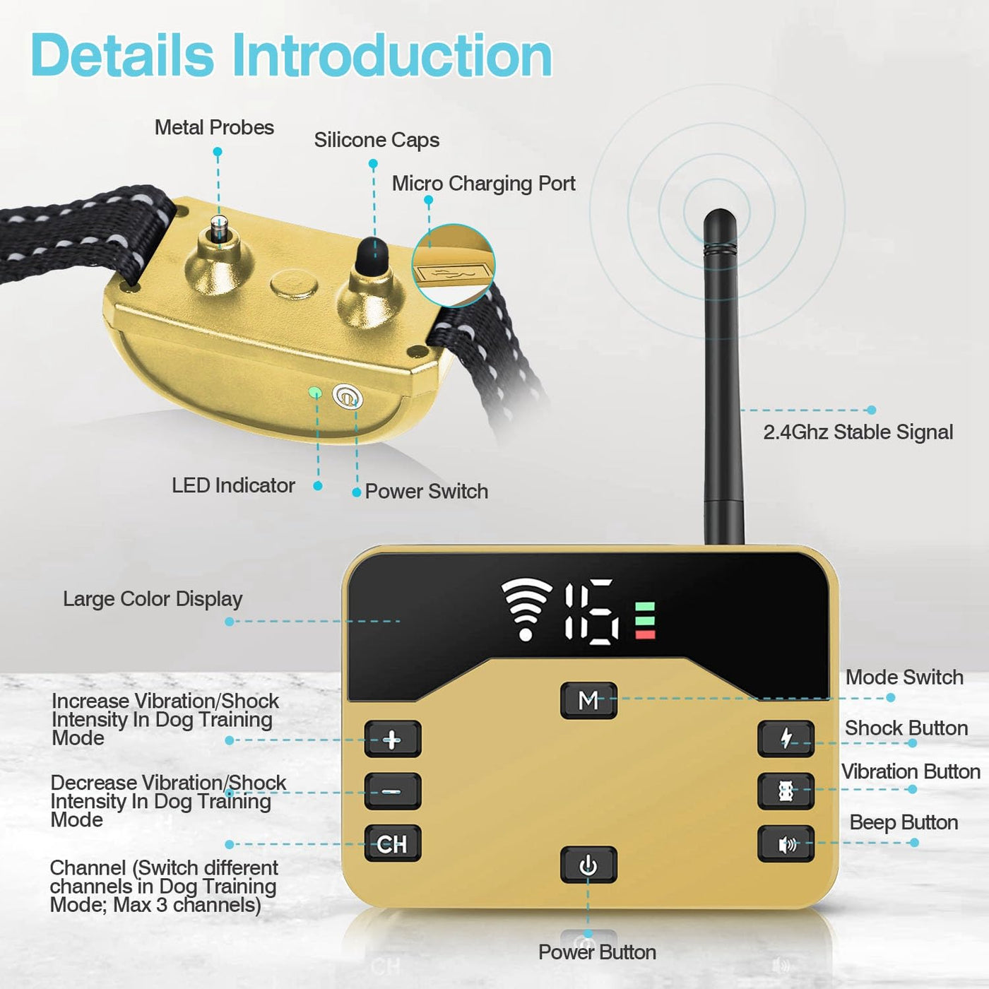 Specification: Product Type: Wireless Dog Fence And Training Collar Color: Black Material: Abs; Woven Strap Transmitter Working Time: 1-2 Days Receiver Working Time: Depends On Using Frequency (Standby Time: 7-10 Days) Working Mode: Beep, Vibration, Shock Intensity: 0-9 Levels Of Vibration; 0-9 Levels Of Shock Waterproof Rate: Ipx6 Control Range: 6-260M/20-850Ft Connecting Quantity: Up To 3 Dogs In Training Mode ; No Quantity Limit In Fence Mode Suitable Dogs: 6 Months+; 15-120Lbs Collar Circumference: 24-58Cm/9.45-22.83In Receiver Size &Amp; Weight:6.5X3.8X4Cm/2.56X1.5X1.57In; 65G/0.14Lbs (Thickness: 2.5Cm/0.98In) Transmitter Size &Amp; Weight: 11X8X2Cm/4.33X3.15X0.79In; 127G/0.28Lbs Package Size: 19X15X4.5Cm/7.48X5.91X1.77In Package Weight: 308G/0.68Lbspackage Contents: 2 X Transmitter 1 X Receiver 1 X 2-In-1 U