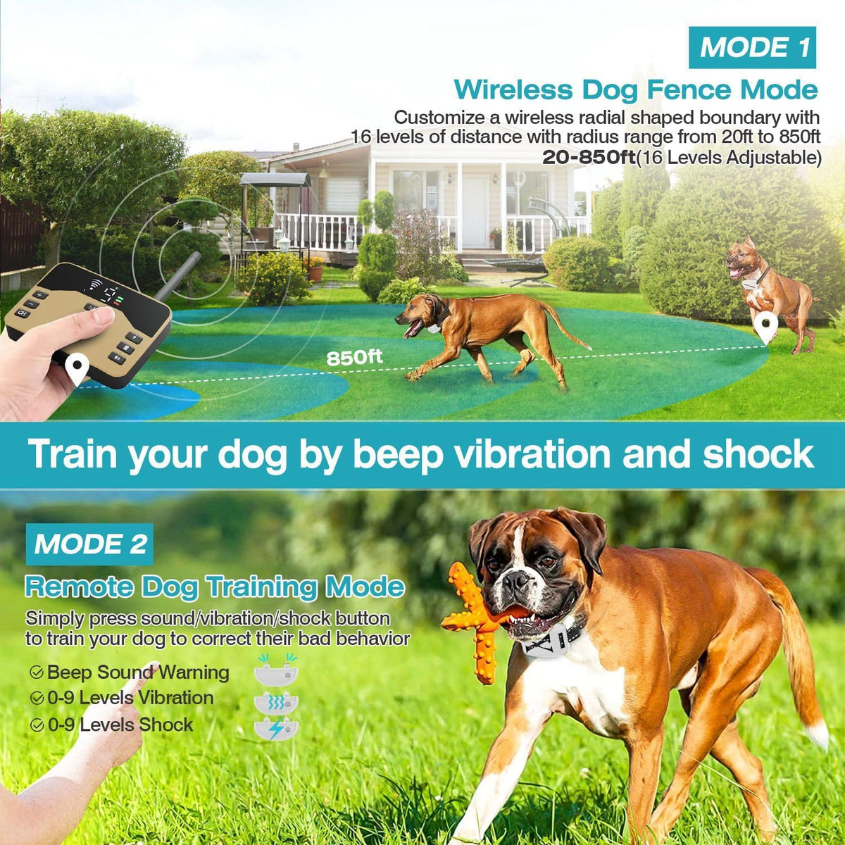 Teqhome Wireless Dog Fence, 2025 Upgraded Electric Fence For Dogs & Training Collar With Remote, 2-In-1 Wireless Pet Boundary Co