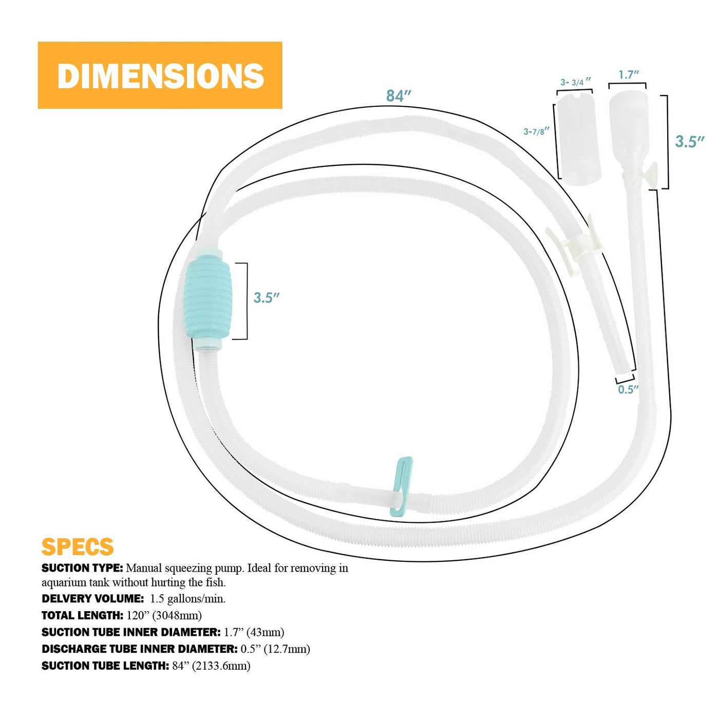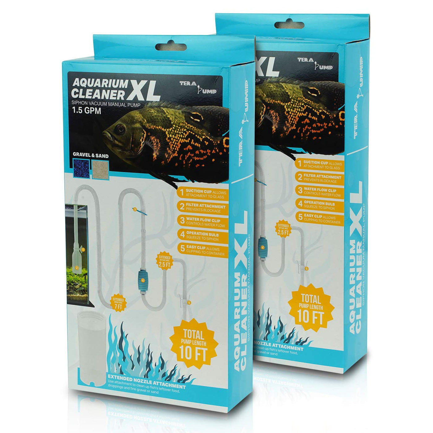 TERA PUMP 2 Pack Extra Long 10 FT Fish Tank Gravel Cleaner Siphon - Manual Water Pump for Aquariums 10 Gallons - BPA-Free Water