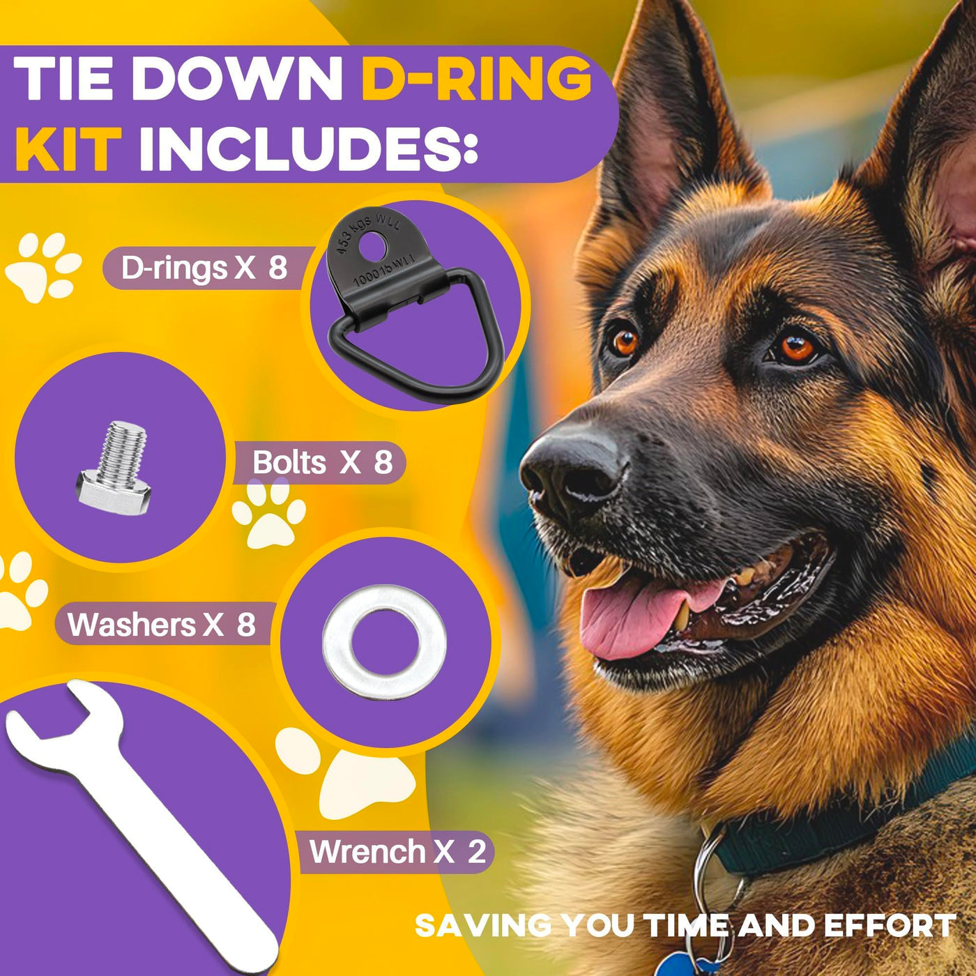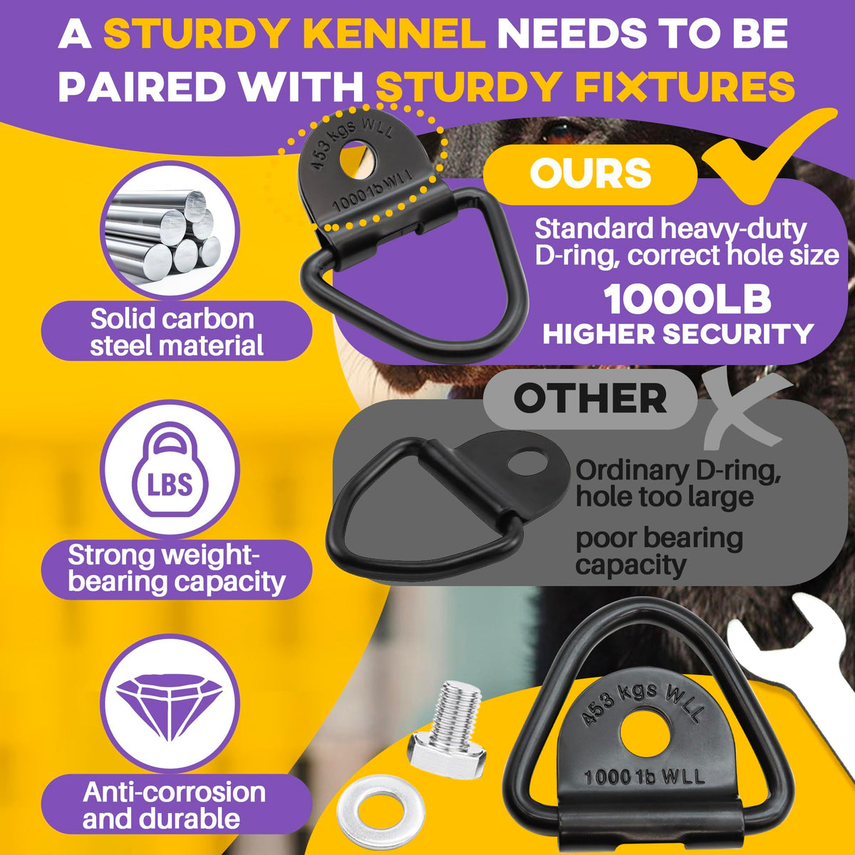Introducing The Tie Down Kit For Ruffland Kennel - The Ultimate Solution For Securely Fastening Your Dog Crate During Transport. Designed To Provide Peace Of Mind And Safety For Both You And Your Furry Friend, This 8-Piece Set Includes The Essential Components Needed For A Reliable Tie-Down System. Each Kit Comes Complete With 8 Heavy-Duty D-Rings Capable Of Withstanding Up To 1000Bl Of Force, Along With Specialized Dog Crate Bolts And Washers. The Inclusion Of An Installation Wrench Ensures A Hassle-Free Setup Process, Allowing You To Quickly And Easily Secure Your Ruff Land Kennels In Your Vehicle. Compatible With Most Vehicles, This Tie-Down Kit Is Specifically Designed To Work Seamlessly With Ruff Land Kennels, Eliminating The Need For Piecing Together Various Parts And Accessories. The Robust Construction Ensures Durability And Longevity, Giving You The Confidence That Your Dog Crate Will Remain Securely In Place During Travel. Don'T Compromise On Safety - Choose The Tie Down Kit For Ruffland Kennel Today And Enjoy The Convenience And Peace Of Mind It Offers. Say Goodbye To Worries About Your Dog Crate Shifting During Transit And Experience A Seamless, Worry-Free Journey Every Time