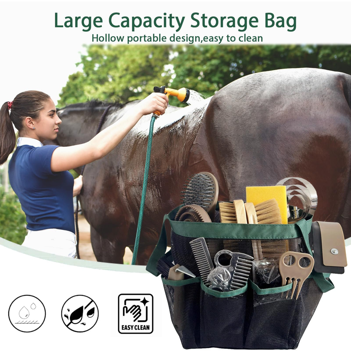 Introducing The Terpup&Nbsp;13-Piece Horse Grooming Kit, A Comprehensive Set Designed For Horse Owners Who Prioritize Both Care And Convenience.This Expertly Kit Includes Essential Grooming Tools To Meet All Your Horse'S Grooming Needs, Making It An Indispensable Addition To Your Horse Care Routine. Accessories Included: ??Soft Horse Brush - Perfect For Sensitive Areas And A Gentle Touch. ??Hard Horse Brush - Ideal For Removing Dirt And Debris From The Coat. ??Grooming Sponge - Great For Bathing And Cleaning Delicate Areas. ??Oval Massage Curry - Stimulates The Skin And Promotes Blood Circulation. ??Hoof Pick With Brush - Essential For Maintaining Clean Hooves. ??Sweat Scraper - Effective For Removing Excess Sweat And Water After Exercise. ??Curry Comb - Helps In Loosening Dirt And Hair, Making Grooming Easier. ??Two Portable Metal Combs - Excellent For Detangling Manes And Tails. ??Mane And Tail Brush - Specifically Designed For Smooth Brushing Of Hair. ??Horse Braiding Comb - Useful For Creating Neat Braids.&Nbsp; ??Rubber Band - Perfect For Securing Braids Or Tasty Treats. ??Storage Tote Bag - Keeps All Grooming Supplies Organized And Portable. Advantages And Benefits: ??This Horse Grooming Kit Is Crafted From High-Quality Materials, Ensuring Long-Lasting Durability And Reliability.&Nbsp; ??The Varied Range Of Tools Allows For Effective Grooming, Bathing, And Massage, Addressing All Aspects Of Horse Care With Ease.&Nbsp; ??The Included Storage Tote Makes Organization Effortless, While Its Mesh Design Facilitates Drainage, Keeping Your Tools Clean And Ready For Use. ??Designed For Both Novice And Experienced Riders, This Set Simplifies The Grooming Process, Providing Ergonomic Tools That Enhance User Comfort During Grooming Sessions.&Nbsp; ??Beyond Practicality, It Also Fosters Bonding Time Between You And Your Horse, Making Grooming A Rewarding Experience.&Nbsp; ??Whether For Daily Maintenance Or Show Preparations, This Horse Grooming Set Is The Perfect Investment For Horse Lovers, Ensuring Their Equine Companions Look And Feel Their Best.