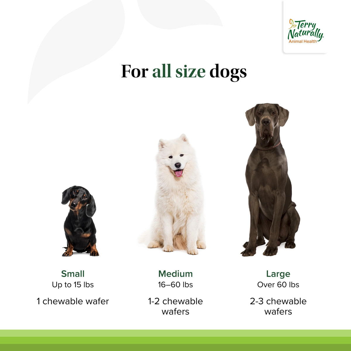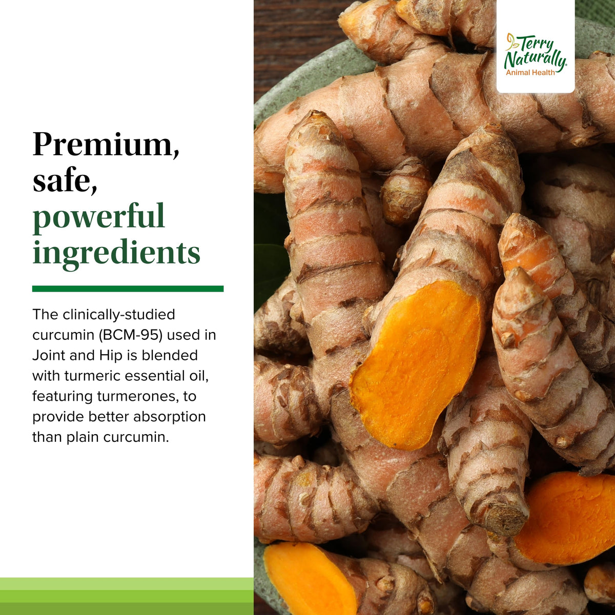 Help your pet live their healthiest life possible with Terry Naturally Joint and Hip Formula.As a pet parent, you understand the importance of maintaining your furry friends mobility and overall joint health. Terry Naturally has crafted a chewable wafer that goes beyond ordinary pet supplies to offer joint support for your dog. Our joint health formula is designed to cater to pets of all ages, whether theyre frolicking puppies or wise seniors.Our wafers are not just another addition to the plethora of dog supplies on the market. They stand out with their blend of curcumin and boswellia supplements. Curcumin, a compound found in turmeric, is known for its ability to support joint flexibility and comfort. Weve enhanced our curcumin with turmeric essential oil for superior absorption, ensuring your pet receives the full spectrum of its benefits. But we didnt stop there-our wafers also include a high-quality boswellia supplement to further aid joint health and flexibility.Understanding the need for pet care, weve meticulously formulated our product to support bone, hip, and joint health. The synergy between curcumin and boswellia in our joint health supplement aims to sustain your dogs agility and vitality. With regular use, you can expect to see a happier, more lively companion that is eager to embark on walks, climb stairs, and play fetch with improved mobility and less discomfort.At Terry Naturally Animal Health, our premium supplements are formulated to help support your pets health. We combine the best of science and nature to make safe, powerful, and effective supplements for high-quality health support. We formulate our products with the highest quality ingredients and adhere to current Good Manufacturing Practices so you can be confident that what we say is in the product, is actually in the product.