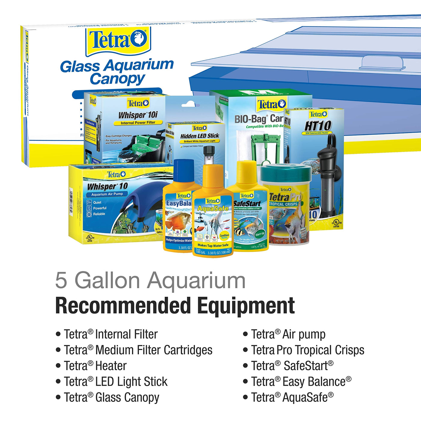 Tetra Glass Aquarium 5.5 gal makes a beautiful home for your fish. This 5.5-gallon rectangular glass tank is perfect for pairing with Tetra filtration, lighting and water care products (sold separately). Customize your tank with assorted Tetra d cor and accessories. Approximate dimensions 16 inches x 8 inches x 10 inches.Small aquariums are a great way to get started in the freshwater fishkeeping hobby, and with any new hobby involving living creatures, it is always best to learn as much as you can. When buying fish, ask your retailer for guidance in choosing the right fish for your size aquarium.Since 1951, Tetra has developed the worlds most comprehensive body of fish food knowledge, and fishkeeping enthusiasts have looked to the brand for products and solutions that add ease and beauty to their home. Whether you're an experienced hobbyist or just starting out, Tetra has everything you need - from a large variety of quality fish food and innovative equipment to test kits and decor.