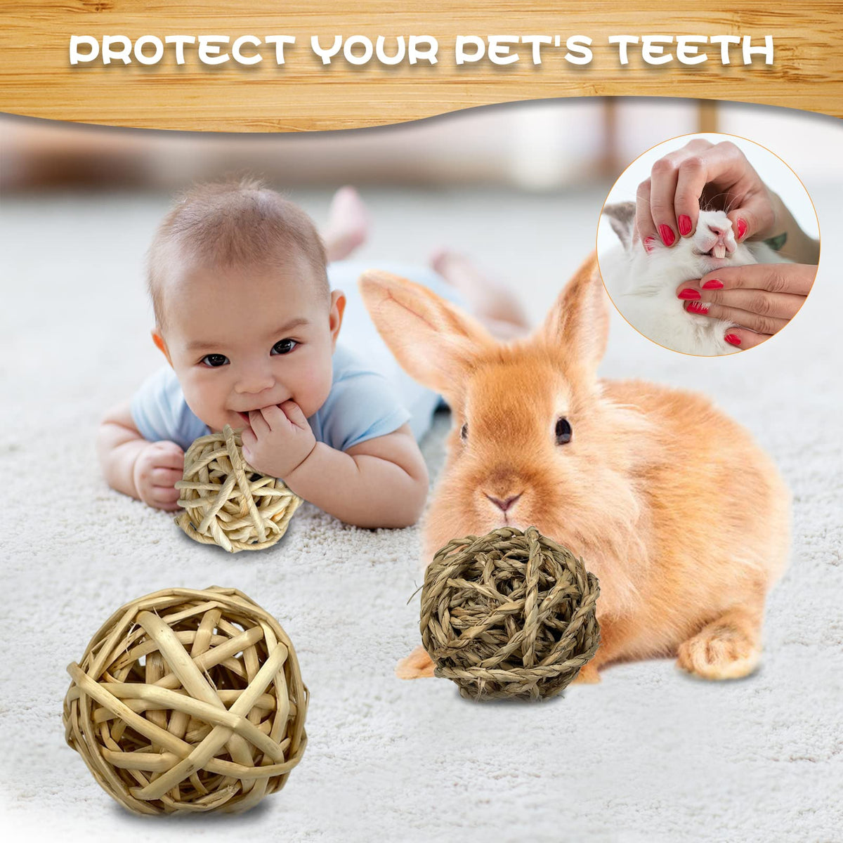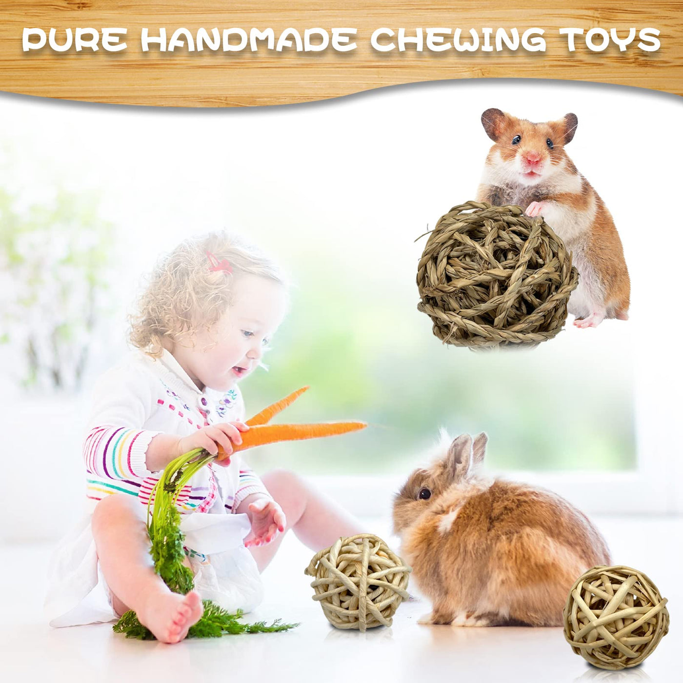 Q: What materials are used in the Tfwadmx Small Animal Chew Ball Toy?A: The Tfwadmx Small Animal Chew Ball Toy is made from all-natural materials, including seagrass, willow, and corn husk. These materials are safe for pets and help promote their natural chewing instincts.