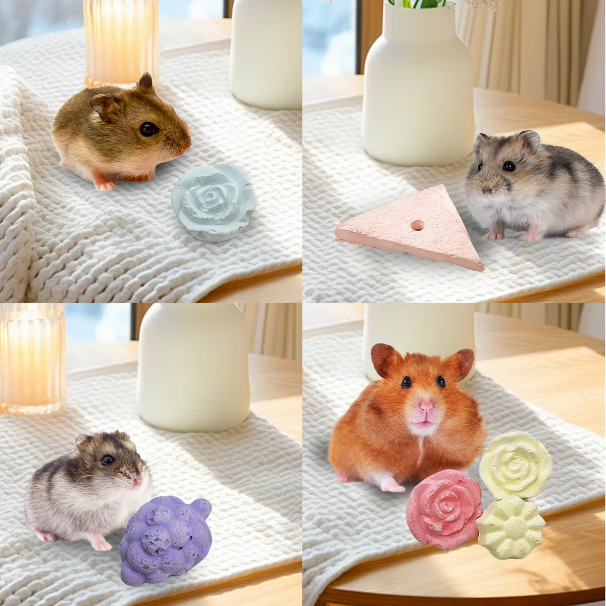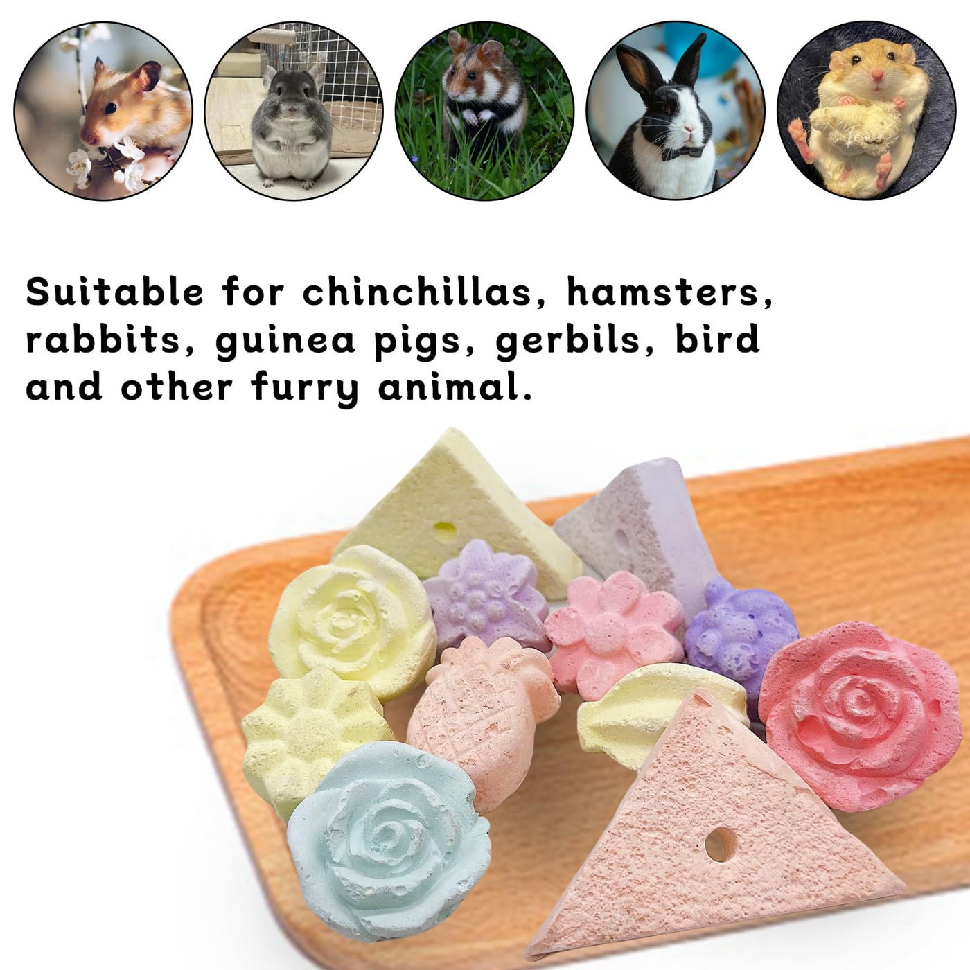 &Nbsp;Product Include: 12 X Hamster Chew Toys &Nbsp;You Can Hang Them Up And Increase Their Interest In Chewing. &Nbsp;Porous Structure Of Lava Stone Makes It Easy For Hamster To Clean And Trim Their Teeth &Nbsp;Made Of Calcium-Rich Lava And Natural Wood, Good For Your Pet'S Teeth Health. &Nbsp;The&Nbsp;Twelve Different Color Shapes Of The Grinding Stones In The Suit Are Individually Packaged For Long-Term Use. &Nbsp;Bright Colors And Unique Shapes Can Attract Pets And Increase Their Curiosity. Suitable For Chinchillas Rabbits Gerbil Guinea Pig Syrian Hamster Squirrel Ferret.