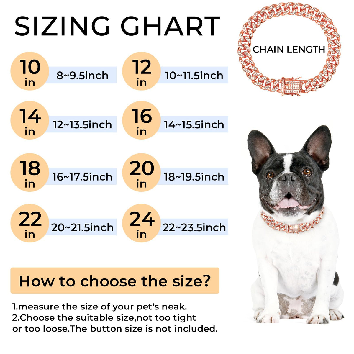 ?Important Size Note? Dear Consumer &Nbsp;The Dog Collar Chain Is Not Adjustable.&Nbsp; Measure Your Dog'S Neck Carefully To Ensure The Right Fit, Avoiding Too Tight Or Too Loose Sizing.&Nbsp; Button Size Is Not Included In Measurements. When Selecting A Dog Chain Collar For Your Pet, It Is Crucial To Measure Their Neck Size Accurately To Ensure A Comfortable Fit.&Nbsp; Use A Soft Measuring Tool, Such As A Tape Measure, To Determine Your Pet'S Neck Circumference.&Nbsp; We Recommend Adding 1-2 Inches To The Actual Measurement To Prevent The Collar From Being Too Tight Or Too Loose,&Nbsp; Ensuring The Best Comfort And Safety For Your Pet. Please Note That The Button Size Is Not Included In The Measurement.&Nbsp; If You Have Any Questions About Choosing The Right Size, Feel Free To Contact Our Customer Service Team For Assistance. Sincerely Thamiao
