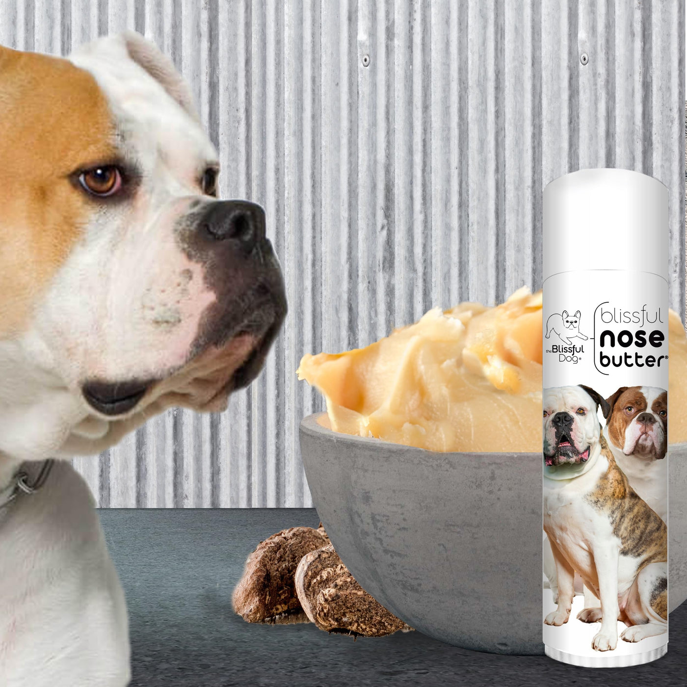 Many dogs have a tendency toward a dry, crusty nose condition, frequently called nasal hyperkeratosis. While any dog can have this condition, some breeds have even more of a predisposition toward dry noses; French Bulldogs, Boxers, Pugs, Bulldogs, most Bully types, Mastiff breeds and their mixes. Nose Butter was developed specifically for this condition. Nose Butter moisturizes rough, dry crusty dog noses. All natural, rich moisturizers soften and smooth your dogs dry, crusty, cracked nose and works like a healing balm. Nose Butter is individually handcrafted in far northern Minnesota (yes, it is science fiction cold in the winter) using all natural and organic good stuff: shea butter, olive oil, castor oil, avocado oil, almond oil, coconut oil, beeswax and cocoa seed butter. Available in Unscented and Lightly Scented with Cedarwood, Cypress and Ylang Ylang. NOSE BUTTER USAGE: DAB a bit onto your dogs nose 1-3x a day for 2-3 days (until nose improves) and then as needed for maintenance (usually1-2x a week). DISTRACT with a treat (keeps them from licking NOSE BUTTER off while it moisturizes). DONE! Complete directions, tips, hints and dog nose info is available on product details pages.